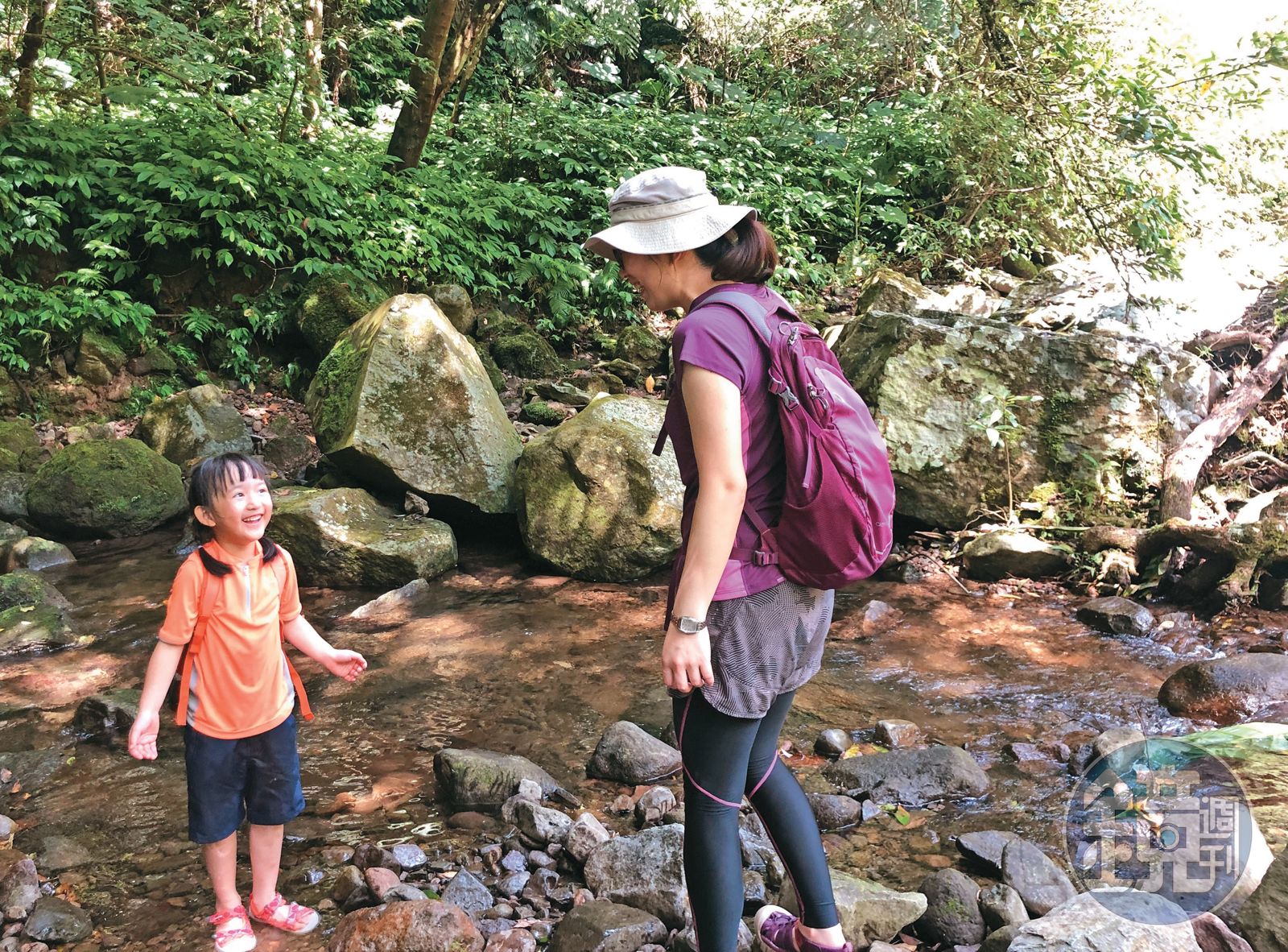此外,「就地取材」製造歡樂也是不錯的方法。登山時,晨爸會沿路撿拾樹枝並稍作修整,讓它化身為哈利.波特的魔法棒,和他們一同遊戲。晨晨自己也會在路上找一些「玩具」自得其樂,「過了3歲,我就讓晨晨練習自己走。她4歲時攀登嘉明湖,整條路上拎著撿來的小石頭當作手斧,一路上想像自己是建築師,敲敲打打就走到終點了。」晨爸笑說,邊走邊玩就是他們一家登山健行最大的樂趣和收穫。