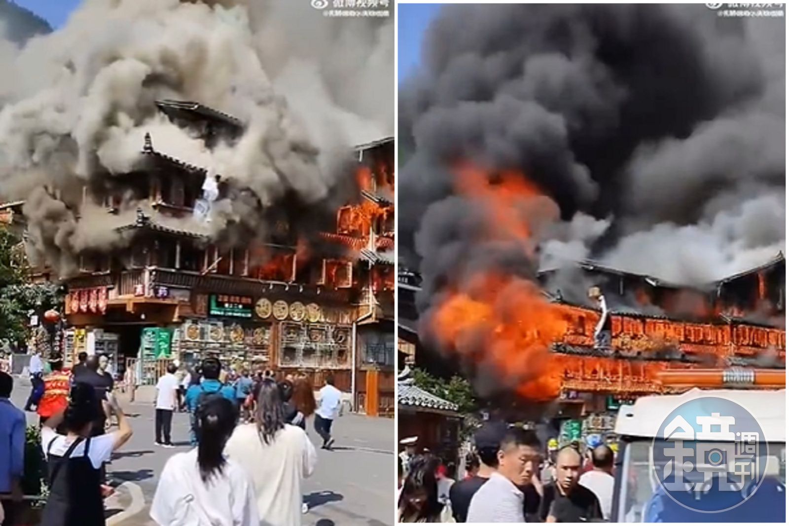 據悉火災發生於10日上午9時左右,當地民眾拍攝的畫面可見,其中有兩棟木造房竄出黑煙,但不到3分鐘的時間,這兩棟房已經被熊熊烈火包圍燒毀。期間有不少民眾從屋內跑到屋頂屋簷,由於等不到消防人員到來,不少人自行跳樓逃生,險象環生,嚇壞不少圍觀的鄉民。