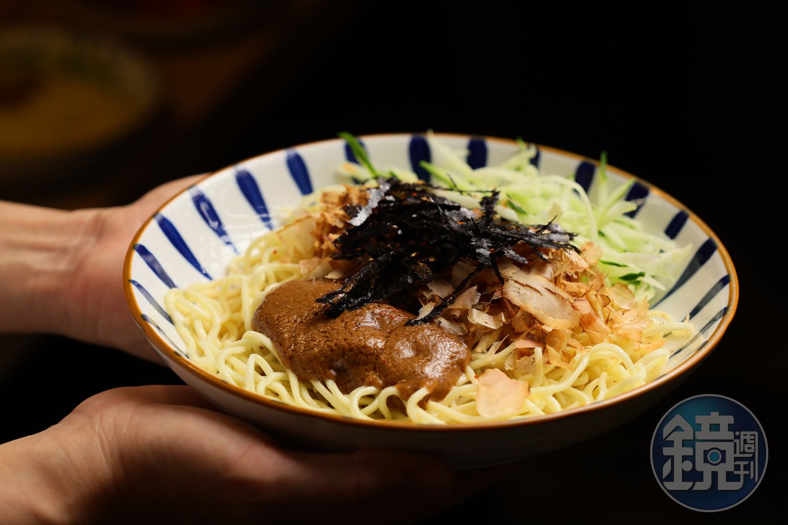「招牌麻醬涼麵」淋上加入花生與帶有少許中藥味的烏醋特製的麻醬,濃厚醬汁口感受到客人喜愛。(50元/小份)深受學生族群喜愛的「和風柴魚涼麵」,則是Bottle在某間涼麵店的麻醬裡嘗到柴魚風味後,受啟發的靈感;為了與涼麵及麻醬搭配,他撒上厚薄與粗細度適中的柴魚片,讓整體口感保持平衡,也比招牌麻醬涼麵的風味更清爽。