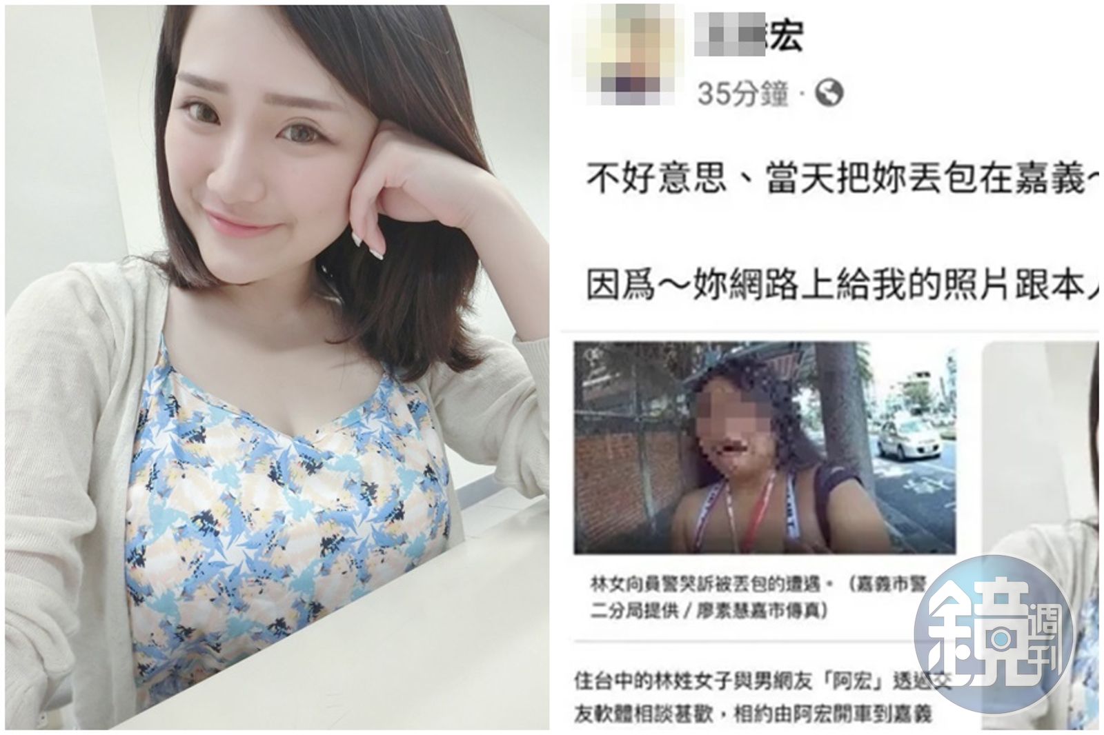 台中妹與阿宏網友第一次見面慘被丟包,因未帶現金哭著向警方求助,消息曝光,掀起大票網友討論,此時有一名自稱阿宏的網友,在臉書公開發文表示,「妳網路給我的照片跟本人差太多了...」同時貼出2張照片,做出對比照來佐證,文章曝光後,大票網友吃瓜紛紛轉傳貼文直呼,「阿宏是對的」「珍惜生命,遠離詐騙」「阿宏幹的好」「這樣看來,阿宏的脾氣很好」「男生要好好保護自己」。