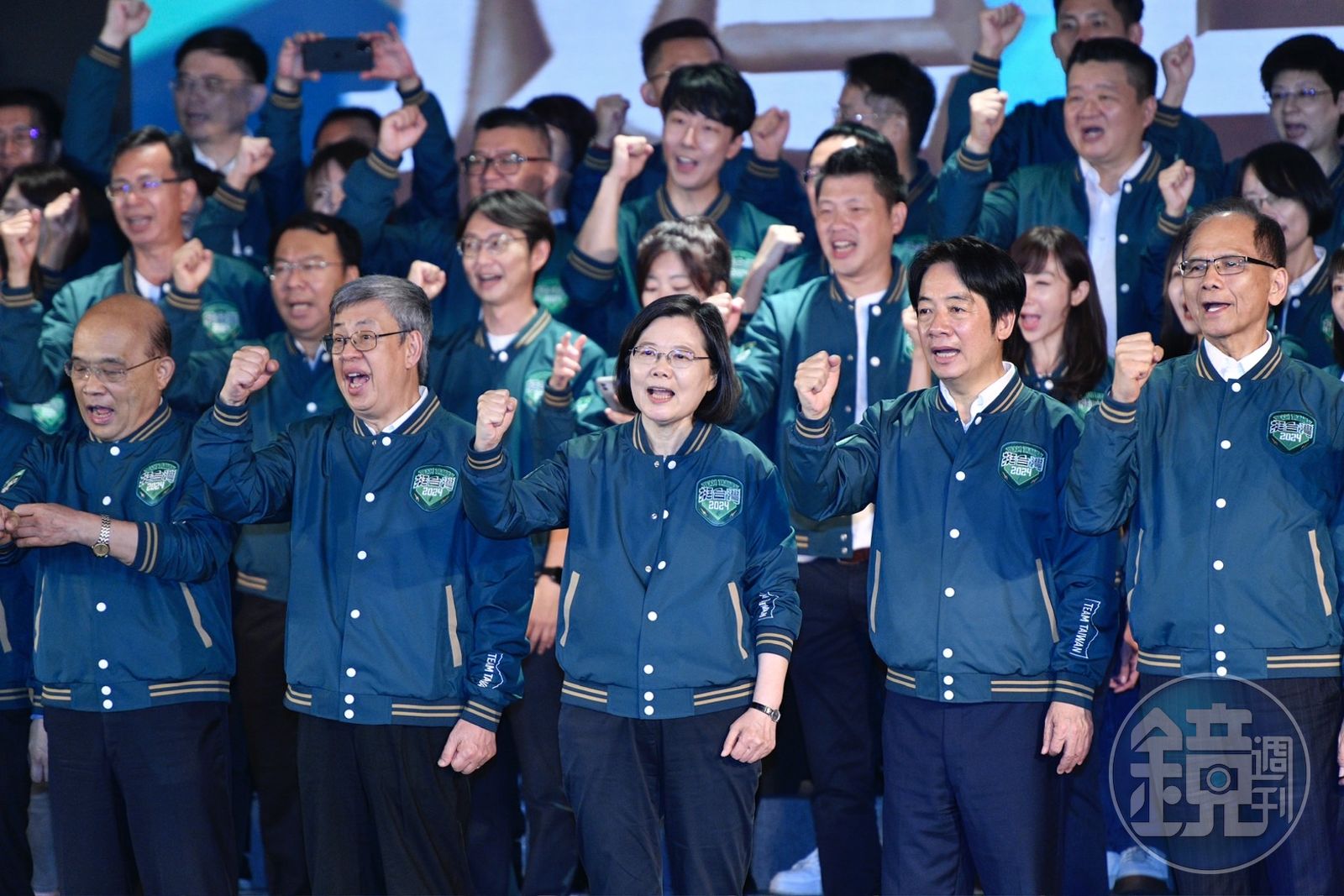民進黨第20屆第2次全國黨代表大會暨2024總統及立委參選人聯合造勢,下午在創黨地台北圓山大飯店舉行。蔡英文與行政院長陳建仁、前院長蘇貞昌,以及全國執政縣市首長、立委參選人,一同穿著賴清德競選的棒球外套大造勢。賴清德在競選場合愛用的出場樂、金曲歌王謝銘祐的歌曲《路》,也在全代會中由謝銘祐親自演唱,並在曲風融入客語等語言,納入多元族群意象。