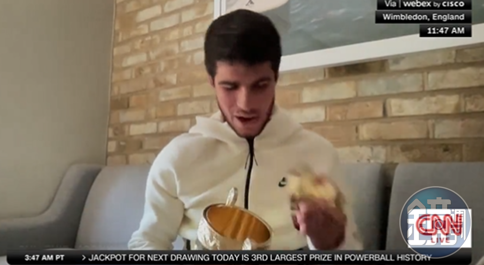 「小蠻牛」阿爾卡拉斯對於這次能夠拿下溫網冠軍,非常開心,這也是他個人首座溫網冠軍,外界更認為這是網球界世代交替的開始。賽後小蠻牛接受美國《CNN》訪問,CNN主播也請求小蠻牛拿出冠軍金盃秀一下,這時小蠻牛拿起金盃,但這個金盃卻瞬間「解體」,盃蓋直接掉出來,一度讓CNN主播和小蠻牛都相當尷尬。不過最後小蠻牛還是露出開心的笑容,在鏡頭前展現出他拿到冠軍金盃、難以用言語形容的愉悅。