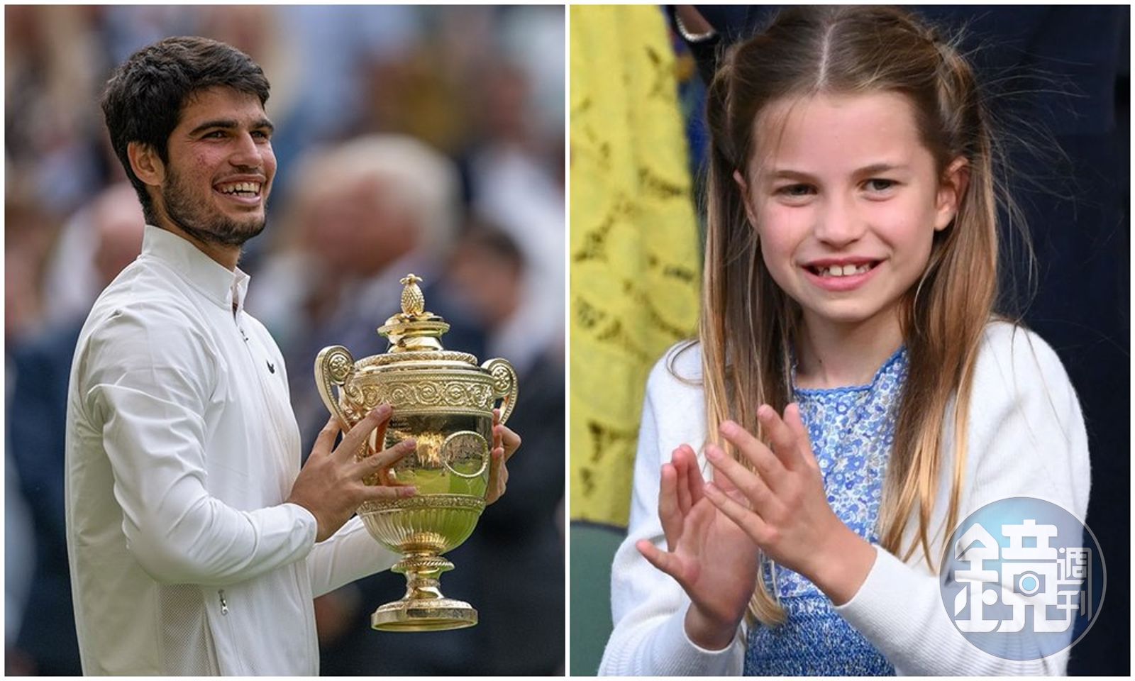 夏綠蒂公主(右圖)是阿卡瑞茲(左圖)的小迷妹。(翻攝Wimbledon官網、katemiddletonprincessofwales IG)發布時間:2023.07.18 14:41 臺北時間