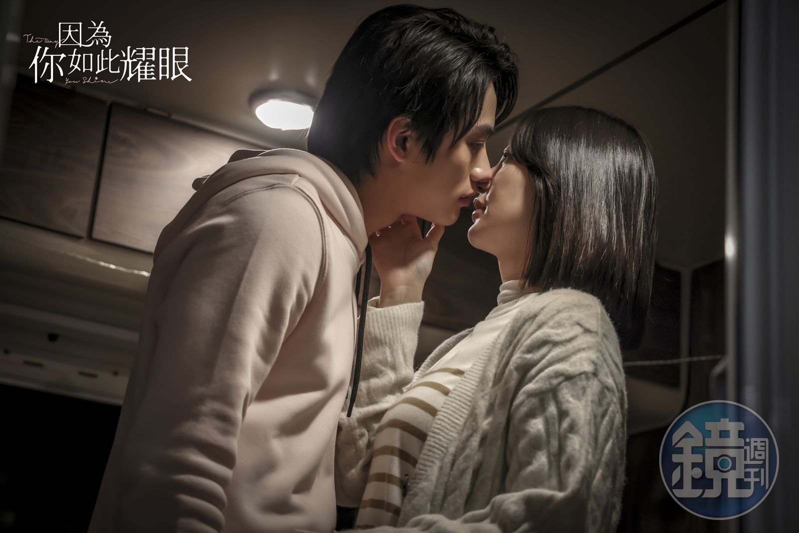 郭雪芙(右)和范少勳(左)露營車內甜蜜熱吻。(時創影業提供)發布時間:2023.07.21 14:54 臺北時間