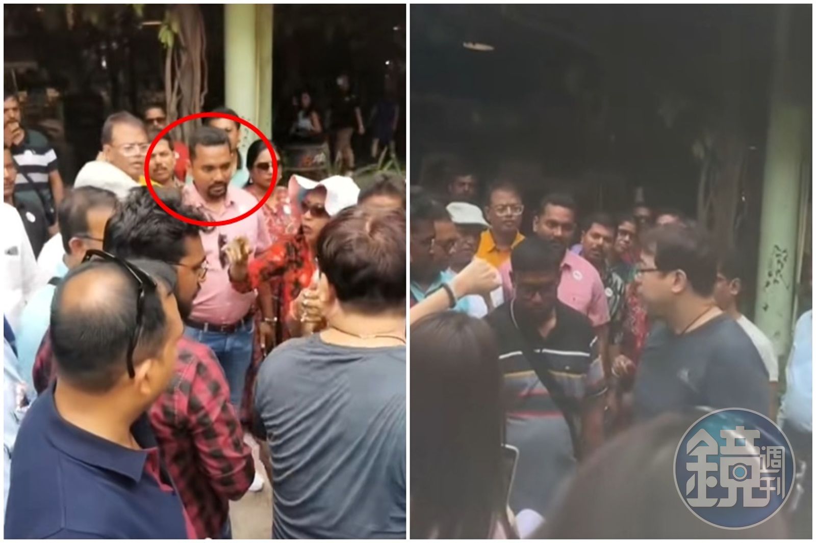 一行人也不斷向伸出狼爪的印度人比倒讚,印度旅遊團其他人等也急忙以手勢緩和,但場面仍相當火爆。