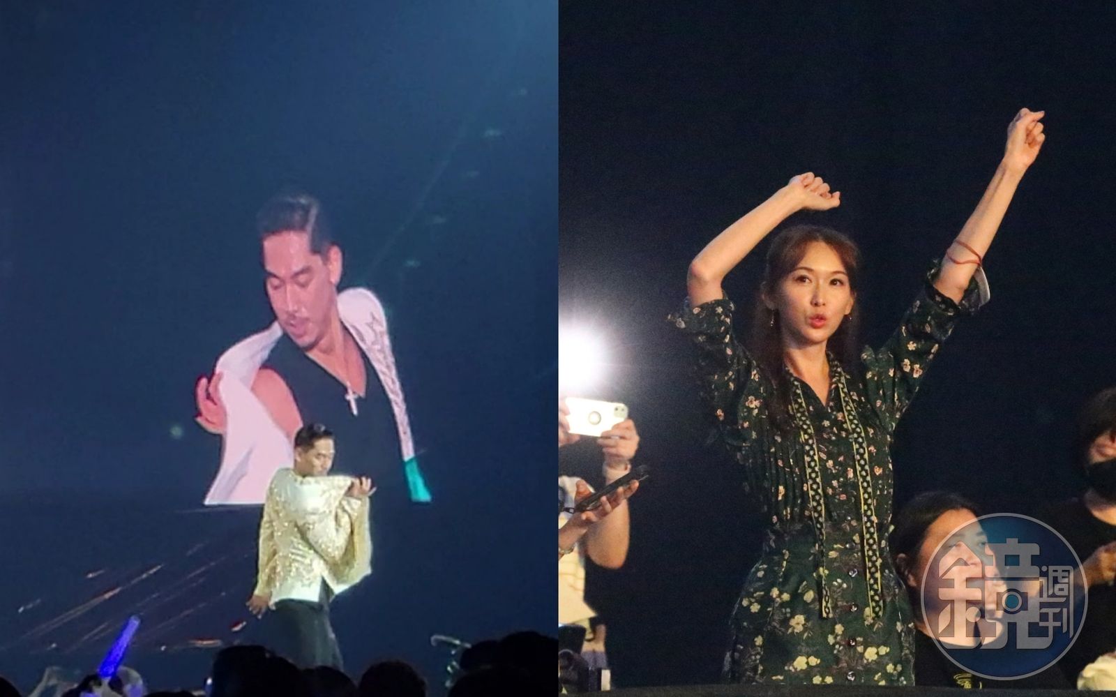 EXILE AKIRA與TAKAHIRO與放浪二勢力共6名藝人以紅色亮片舞台服裝登場,精湛唱功與華麗舞蹈立刻引燃全場觀眾熱情,跟著音樂擺動身體。而跟著跳的不只是觀眾們,坐在VIP席的林志玲完全就是EXILE的應援啦啦隊隊長,嗨到口罩也不戴,站著隨放浪兄弟的歌曲跳舞,形成老公在台上跳,老婆在台下也在跳的情景,超級甜蜜。