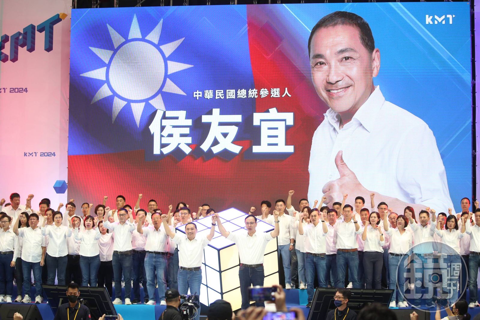 國民黨第21屆第3次全國代表大會上午展開,重頭戲之一就是討論事項階段,由中央委員會提出的「徵召侯友宜為總統候選人案」,包括前總統馬英九、前主席江啟臣、台中市長盧秀燕、前高雄市長韓國瑜等黨內大咖,以及全場全千逾千位黨代表都起立鼓掌,通過侯為藍營2024總統參選人,一展大團結氣勢。