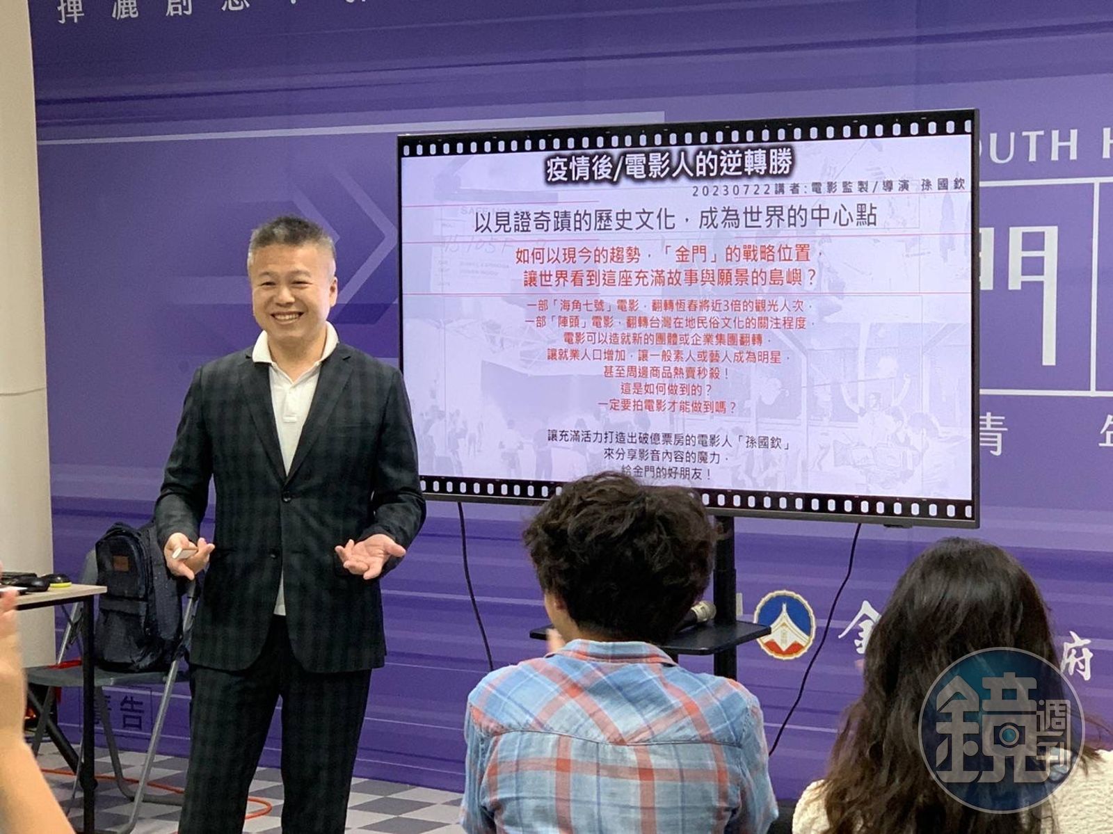 他這次受金門縣政府建設處青年三創服務平台邀請,和在地創業青年分享賣座電影的祕訣,教導大家如何利用影音創造流量、增加產品附加價值,他說,其實好看的影片不論長短,就是要抓緊「熱血溫情」、「前後反差」、「kuso 有趣」、「跟緊時下議題」4大原則,不靠大牌演員、不搞特效,票房一樣可以嚇嚇叫,這個準則套在各種短影音上,其實也很適用!