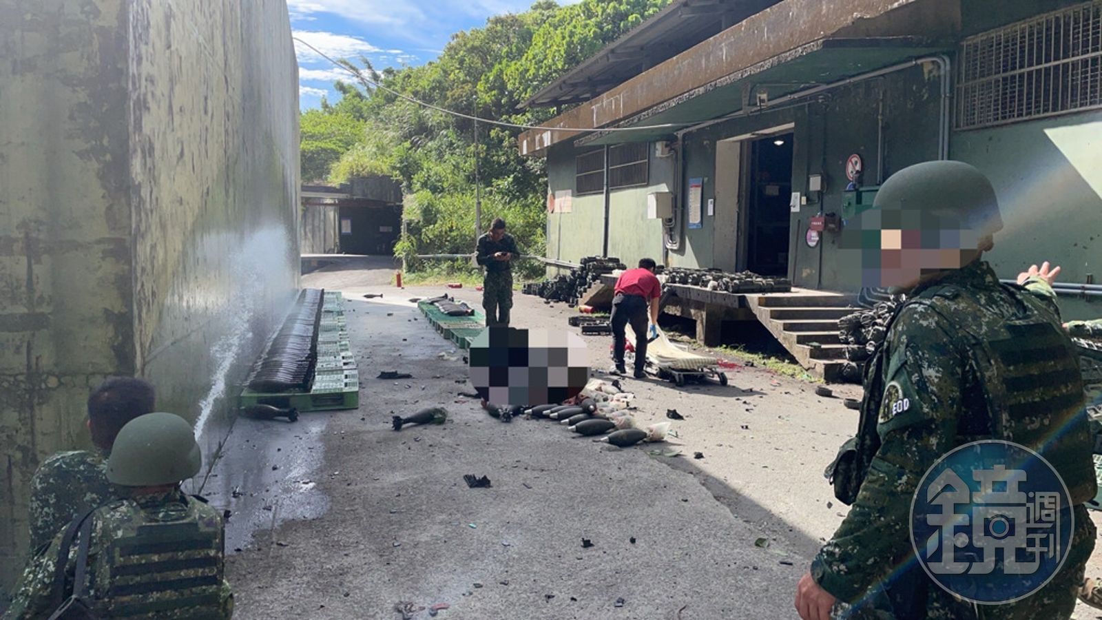 陸軍六軍團三支部營區今日下午3時許驚傳爆炸意外,共計9名士兵受傷。(翻攝畫面)發布時間:2023.07.24 17:17 臺北時間