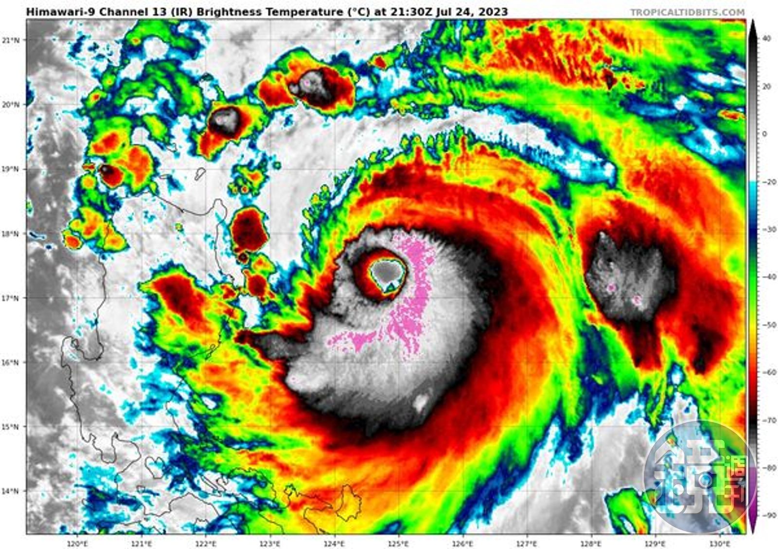 中央氣象局技正羅雅尹指出,杜蘇芮颱風眼清晰可見,今晨強度已增強達中度颱風上限,接近呂宋島海面條件有利再增強,也不排除增強為強度颱風接近呂宋島北方海面,通過巴士海峽後強度有機會稍減。 杜蘇芮颱風目前以每小時15公里速度,向西北西進行,近中心最大風速每秒48公尺(約每小時 173公里),相當於15級風,7級風平均暴風半徑280公里。