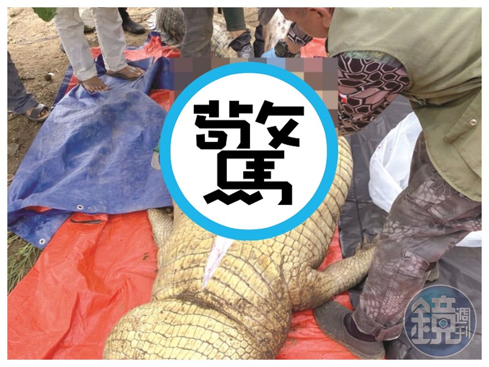 就在本月24日,警方與動保人員堅信找到「殺人鱷魚」,於是展開圍捕狩獵工作,最後將這長達4.2公尺的沙人鱷魚槍斃,隨後將其剖腹,果然在鱷魚的肚裡找到一具人類遺體。警方表示,這具人類遺體的頭部和上半身已被鱷魚擠壓碎裂,只剩一隻腳還保持原狀,警方初步認定死者應該就是邦沙,不過遺體的確切身分,還有待法醫鑑定。