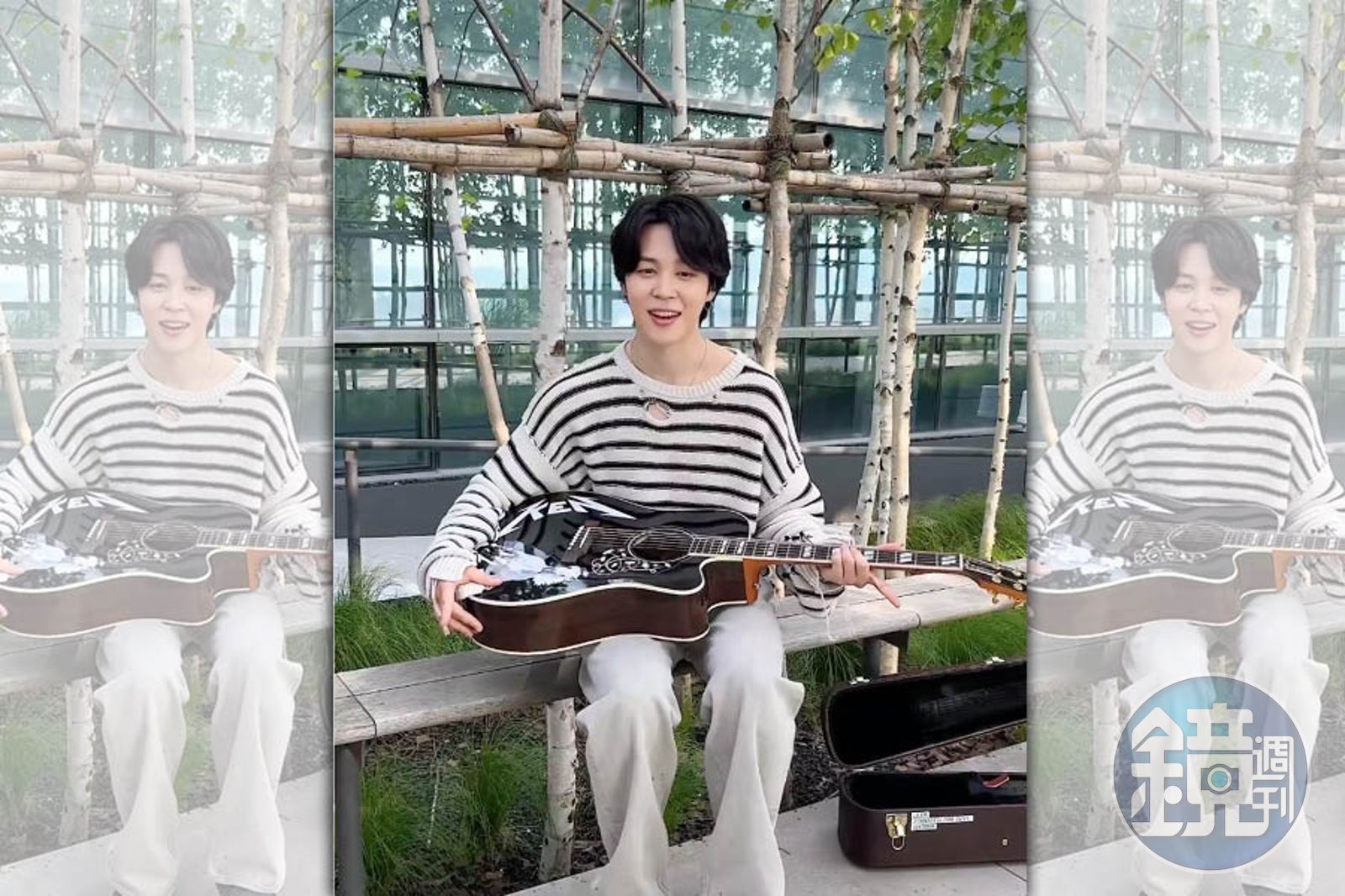 「嗨,Jimin,我是萊恩葛斯林。我發現你在〈Permission to Dance〉MV裡頭的服裝,恰好跟我在《Barbie芭比》裡頭肯尼的造型一樣。」在《Barbie芭比》的官方Instagram上,萊恩葛斯林宣佈這項消息,決定把最珍貴的資產送給Jimin,也就是他在片中的那把黑色吉他,「我必須把它送給你,既然是你先穿上那套衣服的,肯定穿的最好看。而且有一個不成文的肯尼規矩,就是如果你跟另外一個肯尼撞衫了,就必須給對方你最珍貴的資產。所以,我希望你能接受這把肯尼的吉他,當作我最謙卑的恭維。況且,肯尼本人並不會彈吉他,我相信你一定比他強。」