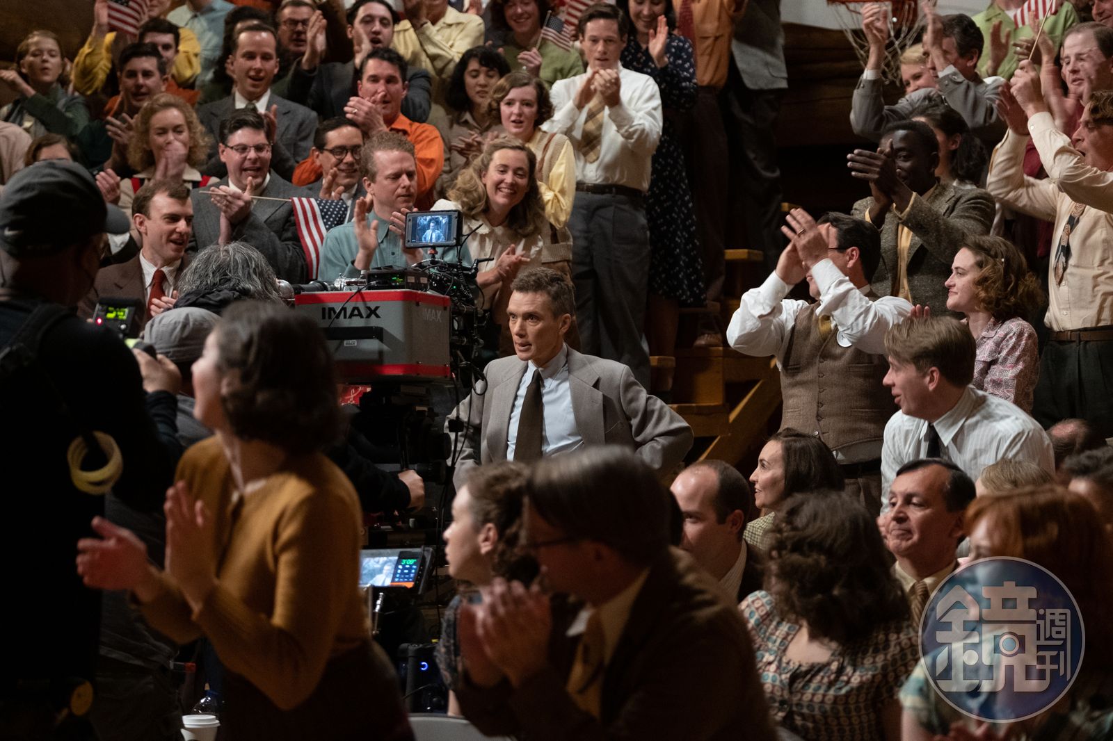 一位名叫「Andrew Craig」的網友,在推特上發表了這一幕觀察,就是當電影劇情來到1945年,奧本海默接受眾人的歡呼與掌聲時,在他身邊揮舞的星條旗,其實不符合1945年的時代背景。因為1945年時,星條旗僅有48顆星,當時夏威夷、阿拉斯加都還不是美國的州。一直到1960年7月4日後,星條旗才是我們現在熟悉的50顆星。但在另外一場戲、也是發生在1945年,奧本海默背後的星條旗卻又變成「正確的」。