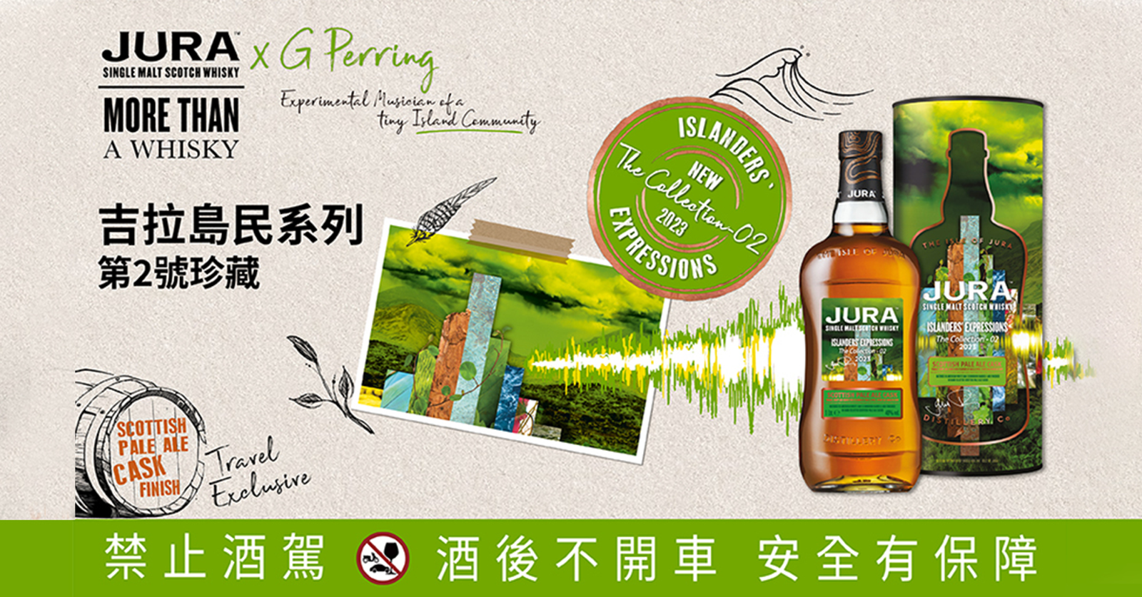 Jura吉拉威士忌以吉拉島與島民間的羈絆為題,擁有強烈故事性,其核心魅力在於它「不僅僅是威士忌」,作為吉拉島上唯一的威士忌蒸餾廠,在島上只有212人的小社區,每一滴「吉拉島民系列」都反映了島上人民的精神與熱情,酒液中蘊藏了在吉拉島上生活的滋味。繼第1號珍藏與島內的珠寶設計家合作大獲好評之後,第二號珍藏與吉拉島當地音樂家Giles Perring合作,讓威士忌愛好者邊啜飲著醇厚的吉拉威士忌,也能夠伴隨著Giles取自吉拉島內自然聲音為靈感所製作的音樂,仿佛沈浸在1984作者喬治歐威爾筆下的「世界最難抵達的險峻之島」中漫步。