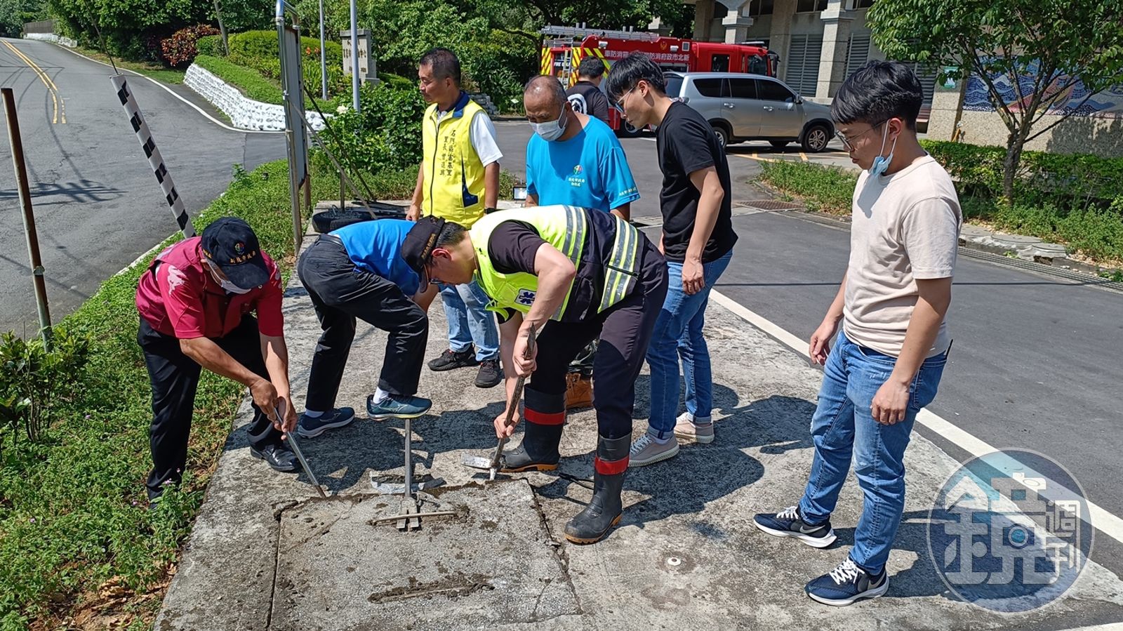 石門區富基里長曾進興說,鄉里民眾在散步時聽見斷斷續續狗吠叫聲,尋覓發出聲音位置出自於里民活動中心前方大型排水箱涵。因為箱涵只有狹小進出水口,無法探頭入內查看,便通知新北市動保處、新北市石門區消防隊、石門區公所等相關單位,前來協助撬開箱涵水泥蓋。非常感謝前來各單位救援人員,在如此豔陽酷熱天氣下,同心協力合作拯救弱小生命。特別是消防隊弟兄爬入深黑箱涵內部,全身髒汙汗流浹背,不畏辛勞為民服務工作的精神,實在令人豎指敬佩。