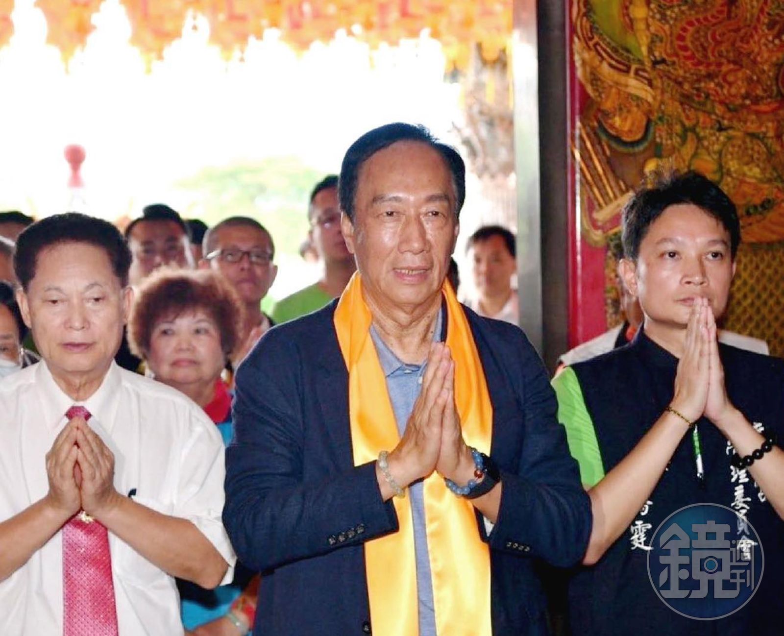 郭台銘最後表示,今天到土城順聖宮、三峽壽天宮與廣行宮,祈願國泰平安。預告自己將展開祈福之旅,「挽起袖子為人民打造幸福,唯有我們共同努力,台灣方能有和平之福、經濟發展之福,以及清廉效率之福」。