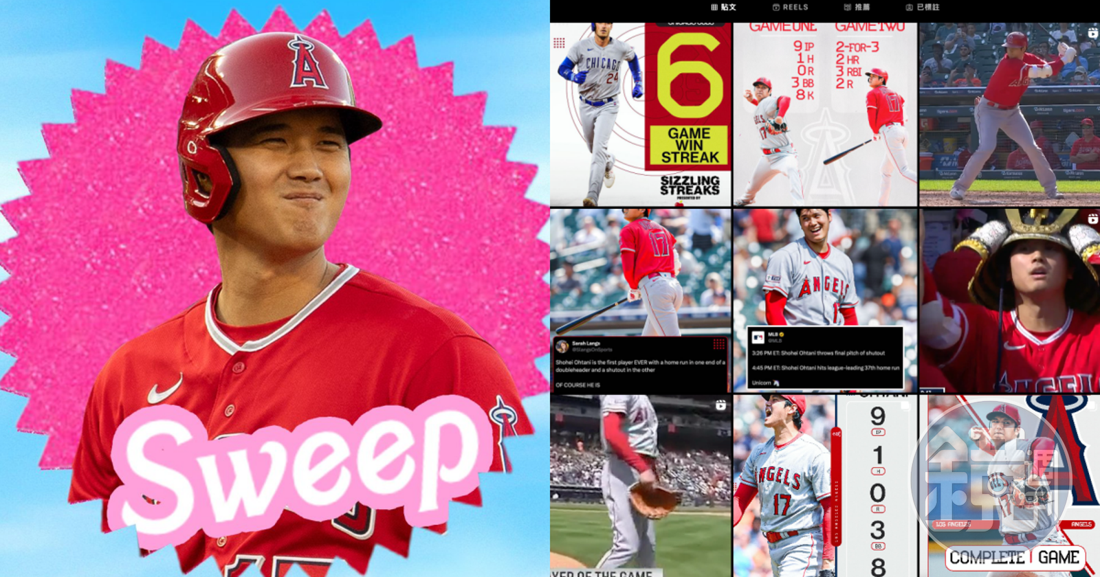 大谷翔平今日的鬼神表現,讓MLB官方IG連發8文(右),推特更有9篇。(翻攝自推特@Angels、IG@mlb)發布時間:2023.07.28 12:07 臺北時間