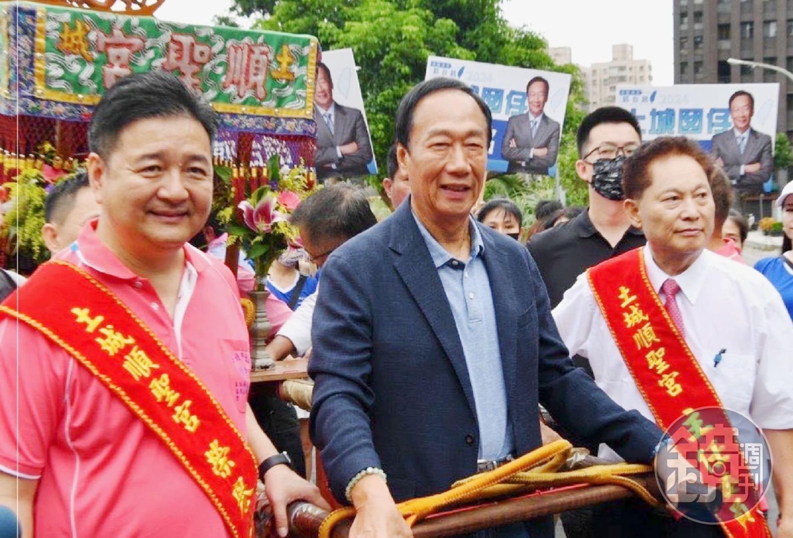 林金結被視為挺侯大將,不料27日陪同郭台銘到土城順聖宮參拜,致詞時不僅說要當郭的後盾,現場還發2人合體的競選扇子,遭質疑倒戈挺郭。但事後林金結喊冤,稱不知道有發送與郭台銘相關的競選小物,強調自己現場發送的是與侯友宜合照的瓶裝水,且出席宮廟活動亦有事先報備。但侯辦方面反駁稱林並未報備,雙方各說各話。