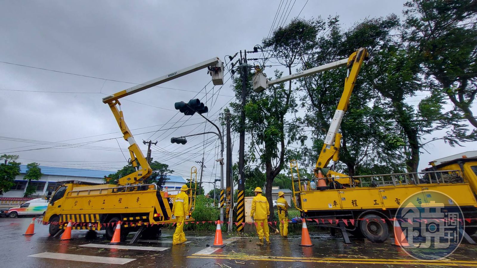 台電高雄區處表示,本次颱風橫掃高雄地區,風勢一度達十級強風,造成許多條高壓輸電線跳脫,強勁的風勢更造成許多路樹倒塌以及招牌掉落壓損電線,並有多處的電桿被強風吹倒,必須重建電桿及拉線,以致影響搶修復電進度,請用戶多點耐心,待搶修人員儘速完成修復。