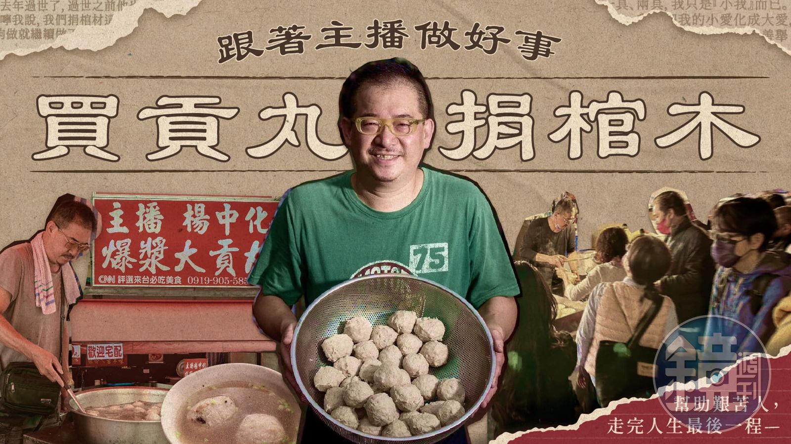 前新聞主播楊中化轉行12年,成為貢丸小販,多年來為完成父親助人願望,已捐出上百具火葬棺木,近日在台灣集資平台-挖貝,呼籲大家發揮愛心,幫助困苦人走完人生最後1里路,目前募資5天,已有上百人支持捐棺義舉。