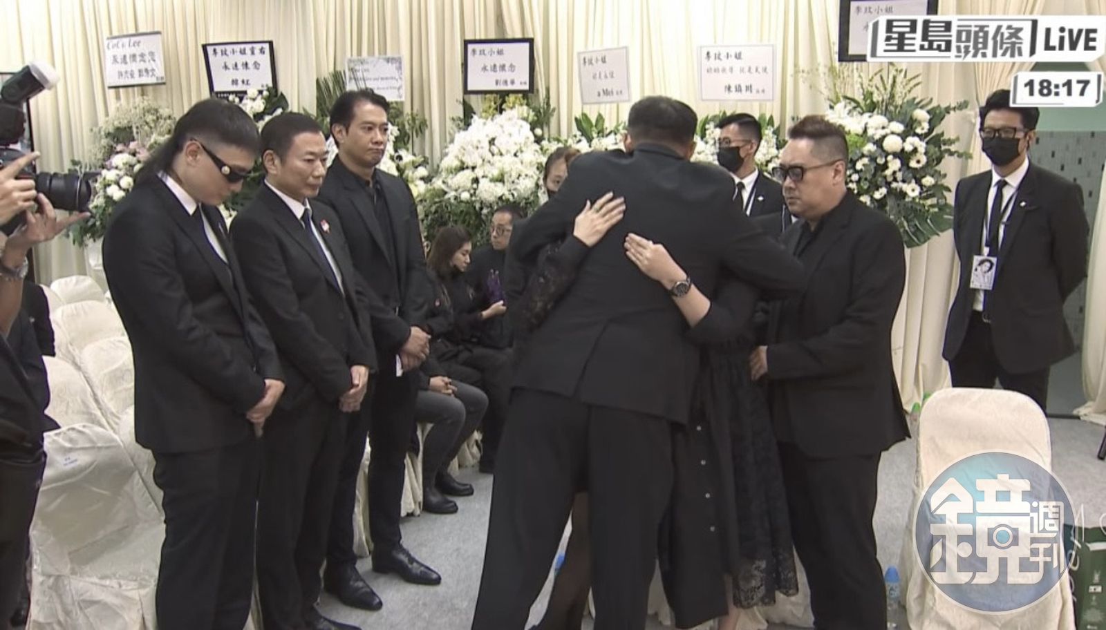 結束公祭後,李玟大姊、二姊突抱著一位男性友人放聲大哭。(圖/星島日報提供)發布時間:2023.07.31 19:08 臺北時間