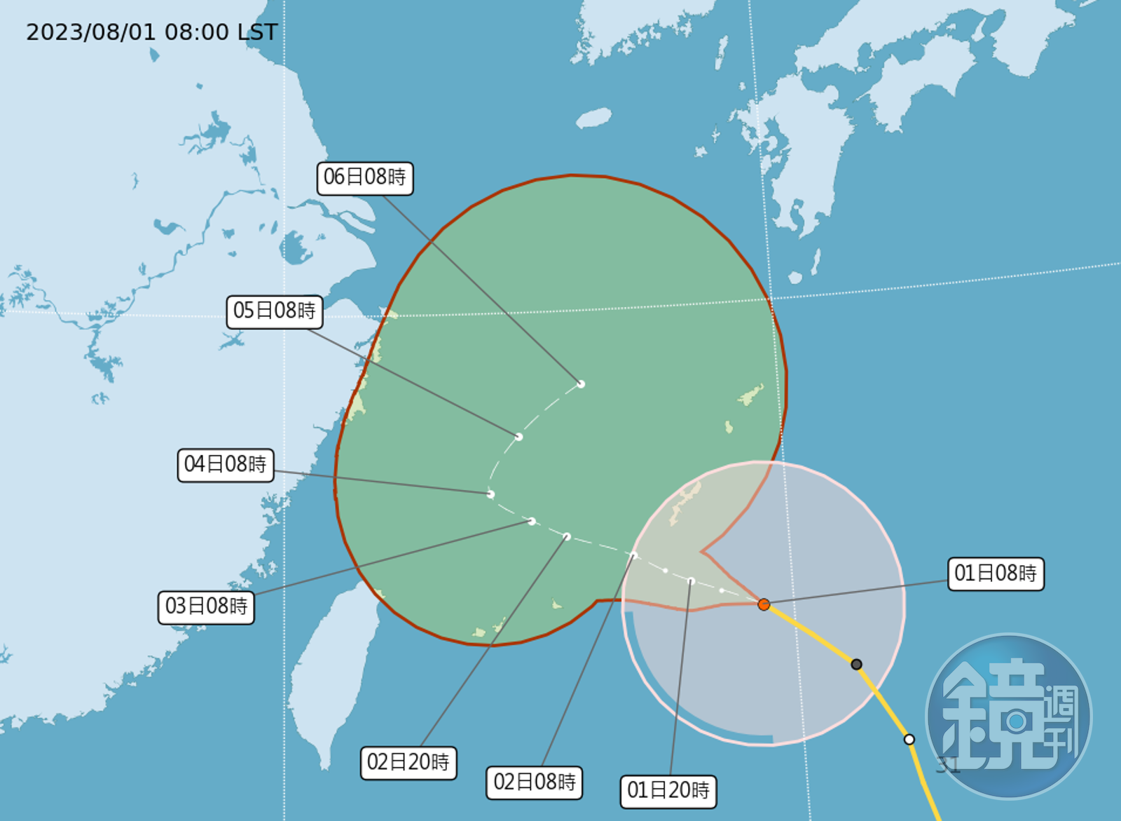卡努颱風路徑多變,「台灣颱風論壇|天氣特急」今在粉專指出,颱風轉向的時間點是觀察重點,目前台灣氣象局預計,卡努抵達台灣東北方時就會慢速北轉,這也是所有機構裡面最偏東的。粉專指出,日本、韓國、中國預測則是走比較西,來到台灣北北東方才轉向。