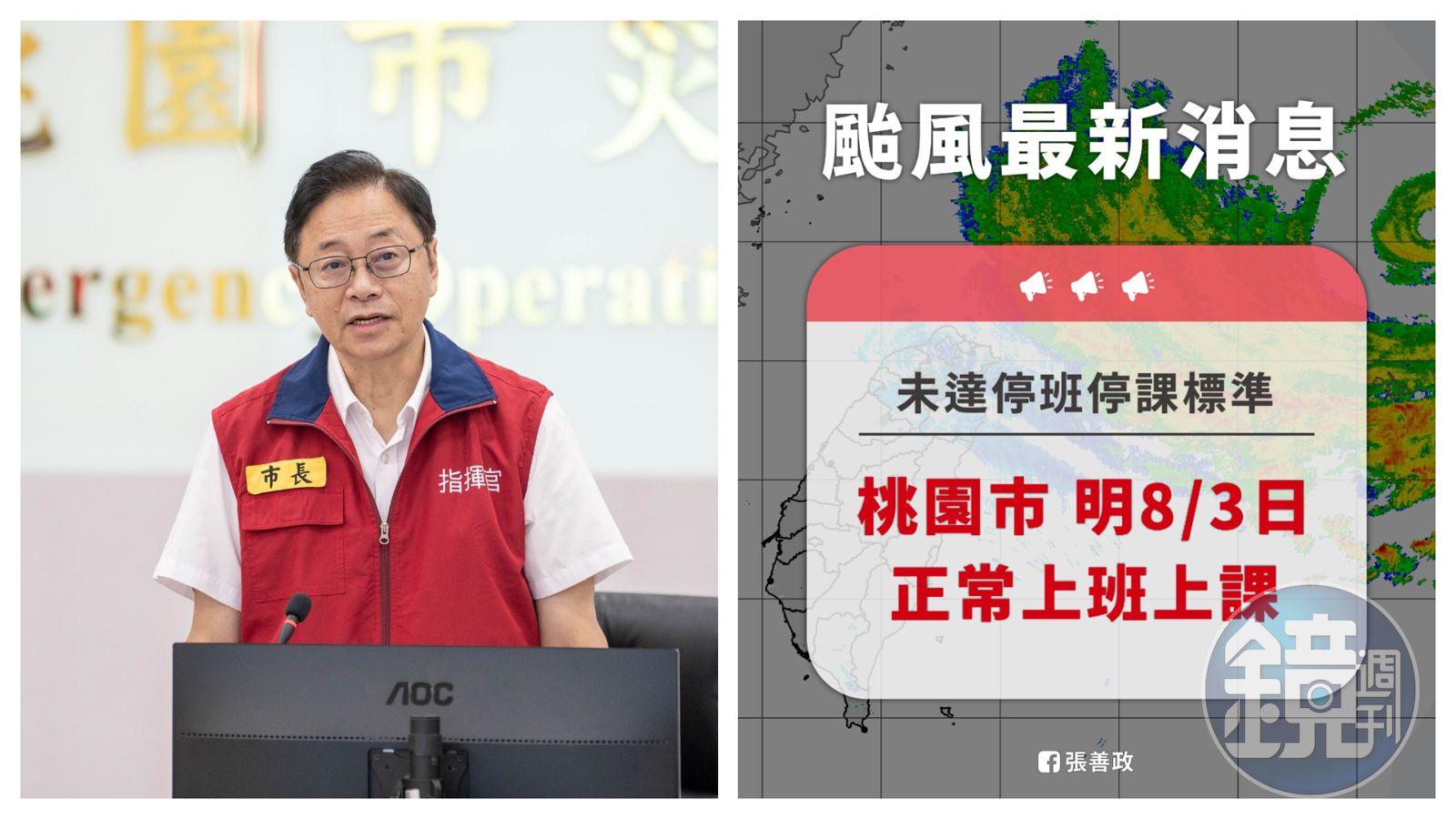 張善政上午受訪時指出,考量市民方便性,原則上停班、停課決定,會盡量跟基北北同步作業。因此同為大台北生活圈的桃園,因風雨未達停班課的標準,與北北基脫鉤得上班上課,讓期待落空的網友灌爆張善政的臉書「說好的同步呢 」「您是我今世看過最善變的男人」「說好的同步處理呢?」。