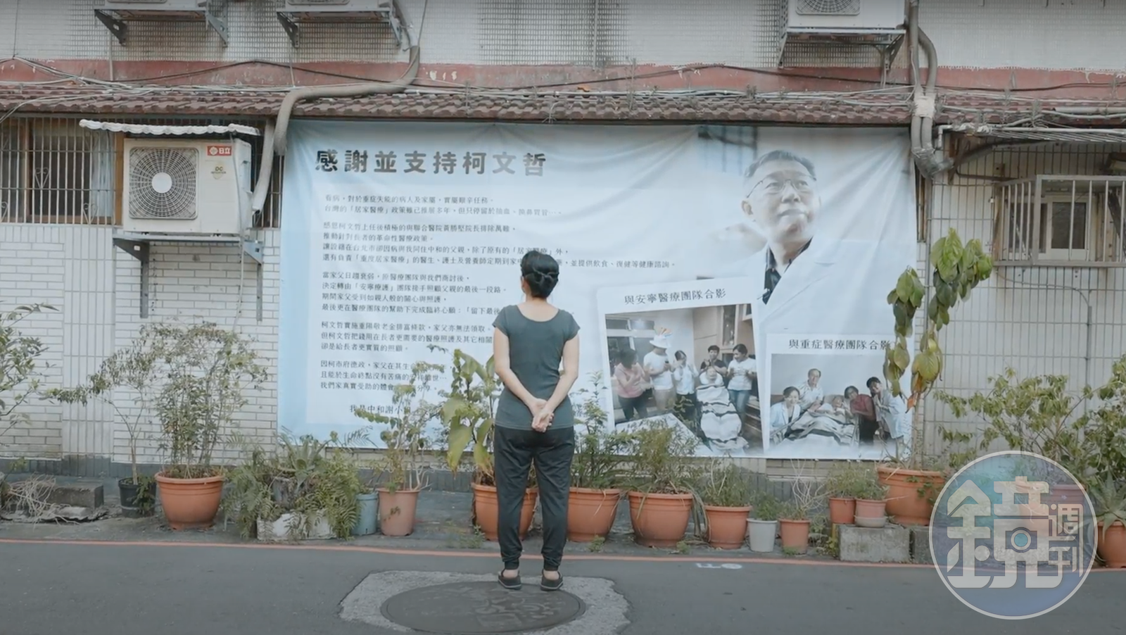 本刊獨家掌握,影片中,謝小姐含著淚、娓娓道出父親臥病在床至臨終的經過,並說,從父親臥床開始,為了解相關政策,「我是從那時候開始認識柯文哲」,後來更發現柯市府說的「嘸係做假的(不是做假的)」,而父親即便認識柯、「覺得這個讚」,但因身體虛弱當年沒辦法投柯一票,「欠他一票」,這次她知道柯要選總統,「我終於可以投他票了」,才做了一個感謝函掛在門口。