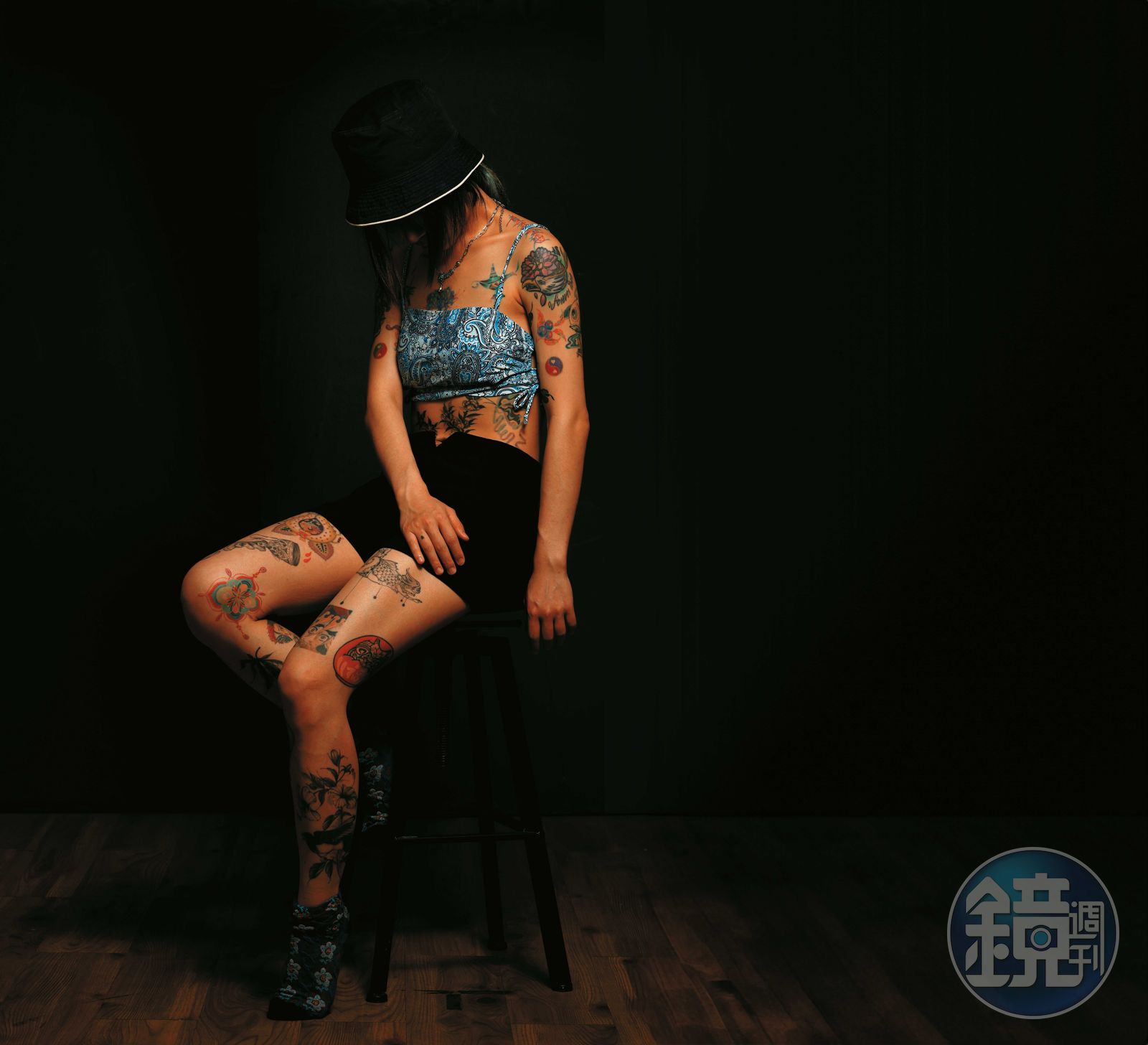 低調衣著下,藏著40多枚刺青,每一枚都有故事:右臂大片菊花滾著海浪,浪裡裹著爸爸名字,「爸爸和我都喜歡海。菊花象徵堅毅。」左臂刺著老鷹,鷹頭長角,角上是媽媽名字。腰際、胸前刺著大片彼岸花,腰上有隻兔子,「彼岸花生長於陰陽交界,希望兔子能幫我傳遞意念到彼岸,給我愛的外婆。」她全身大面積刺青,皆以家人之名,且大多由她設計構圖。問她最喜歡哪一枚?「沒有最喜歡,因為我都很喜歡。」