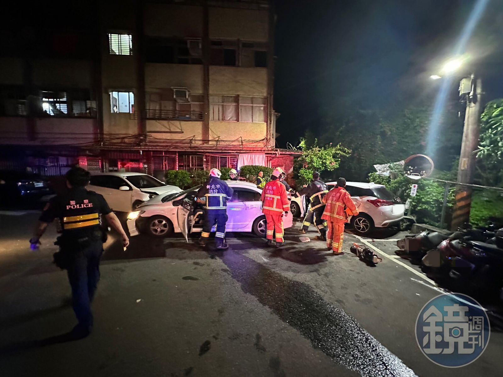 靜巷裡深夜發生3車連環車禍,警消獲報後趕緊前往處理,先將卡在車間縫隙的高男救出送醫,所幸無生命危險。警方調查,當時是高男及王男先發生車禍碰撞,高男正準備下車查看,而李男駕車進入巷弄欲右轉離開,但因巷弄狹小、車速過快,而與王男的車輛碰撞。 王男的車輛被撞後,因為遭到推擠,再次推撞王男車輛,才讓高男下車到一半就直接被夾在車門縫隙間。警消救出受困的高男送醫後,因現場屬巷道出入口,汐止警方先在場進行交通管制,後續再由當事人各自聯繫拖吊車到場拖離。