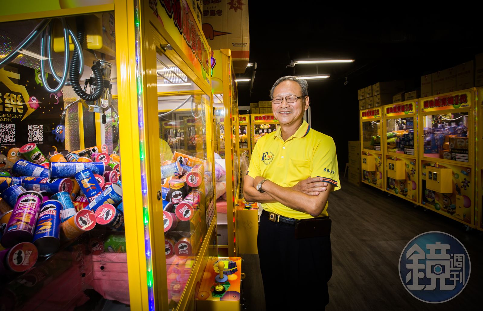製作娃娃機31年的他,其實玩心未泯,沒有董事長的距離感,採訪開始前,他假裝嚴肅地說必須先決定最重要的事,突然拿出菜單請記者選彰化人氣最高的健康餐,「昨天為了請客人,我親自跑去買7個,店家說免談,知道我是飛絡力老闆也沒什麼了不起啦,還是買不到。」他幾句話就能熱場,自嘲專長是練痟話,所到之處充滿笑聲,被封娃娃機大王,他連忙謙虛否認,直說:「很多同行是前輩,我們只是很早就外銷歐美,而且只有我們從研發、製造到銷售經營都做。」