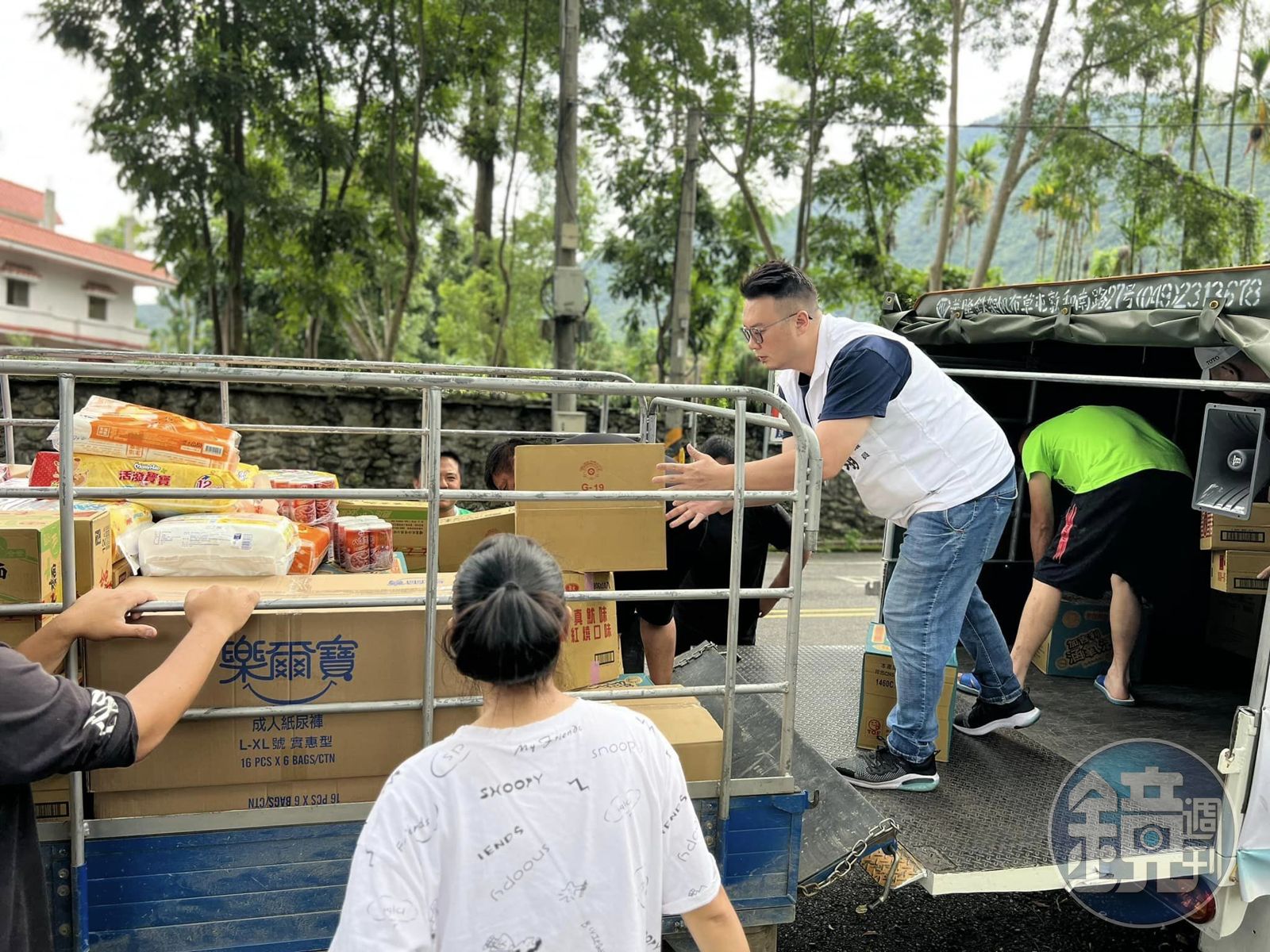 「我們現在一天大概出車2、3次,遇到道路阻斷、濕滑泥地,就用人工方式接力搬。」簡千翔說,他們現以草屯為中心點來運送物資,「預計一步步再往山裡面進去。」