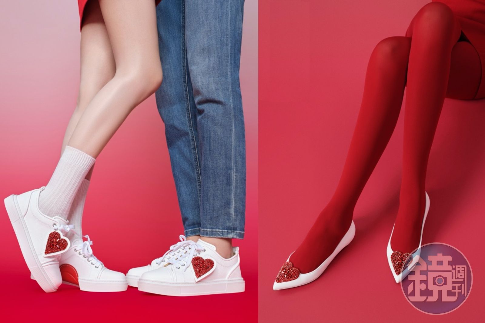 I Love Kate 85mm愛心鑽飾高跟鞋。NT$54,700(Christian Louboutin提供)I Love Adolon Junior Donna 愛心鑽飾運動鞋。NT$46,200(Christian Louboutin提供)專為可愛甜美女生打造的I LOVE KATE高跟鞋以及KATE LOVE平底鞋,沿襲品牌經典鞋型的魅力與雋永,在鞋頭鑲嵌上紅色愛心水晶,並以高級珠寶靈感展現細節魅力,靈動而不失法式優雅。