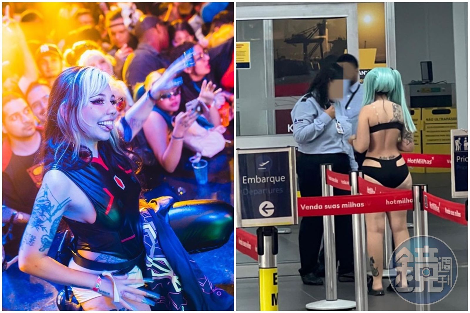 Kine-chan在IG分享在機場登機遭阻止的畫面,當時她提前扮演成動畫《電馭叛客:邊緣行者》(Cyberpunk: Edgerunners)的角色「蕾貝卡」,就是怕趕不上參加Cosplay活動的航班,結果她人到了那維甘特斯機場(Navegantes,巴西)準備登機,卻被地勤人員以穿著不妥為阻攔,害她必須回家換衣服而遲到。