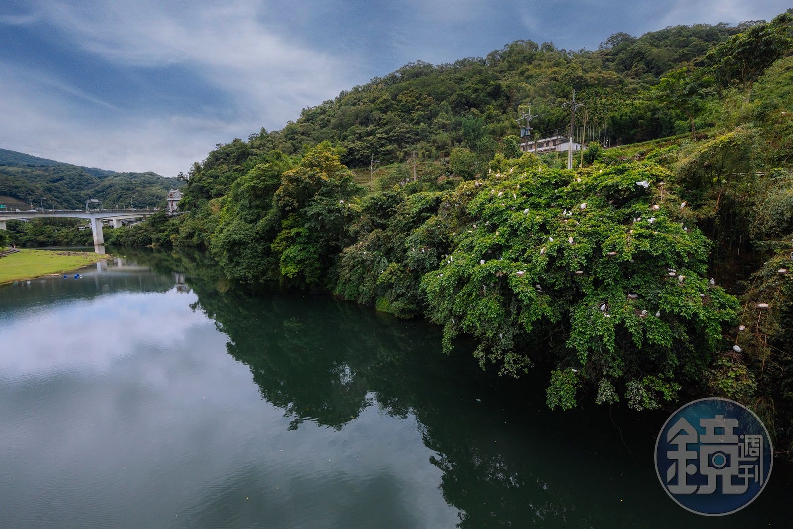 頭一回拜訪白鷺鷥公寓,沒想到就位在北勢溪旁,站在拱橋上就能眺望奇景,起名「公寓」果真如此,樹冠叢上每層至少10戶入住,密集度超高,奇特的景象每年大約持續至7月,夏至歸去,年年如期而至,今年錯過的人,明年可找時間再訪。