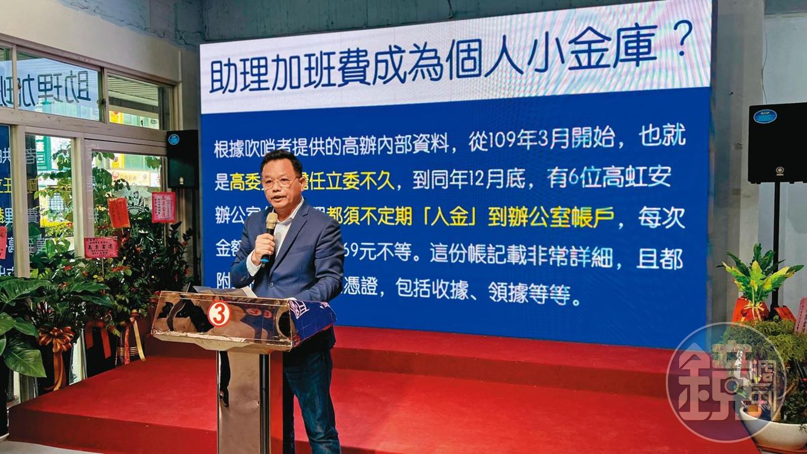 林耕仁去年10月召開記者會,踢爆高虹安任用男友李忠庭當人頭助理詐領公費,以及高要求助理上繳加班費,將公積金當小金庫等爭議。林耕仁一度要親自向調查局遞交資料檢舉,但最後臨時喊卡,不過相關事證仍由吹哨者向檢方主動提供。