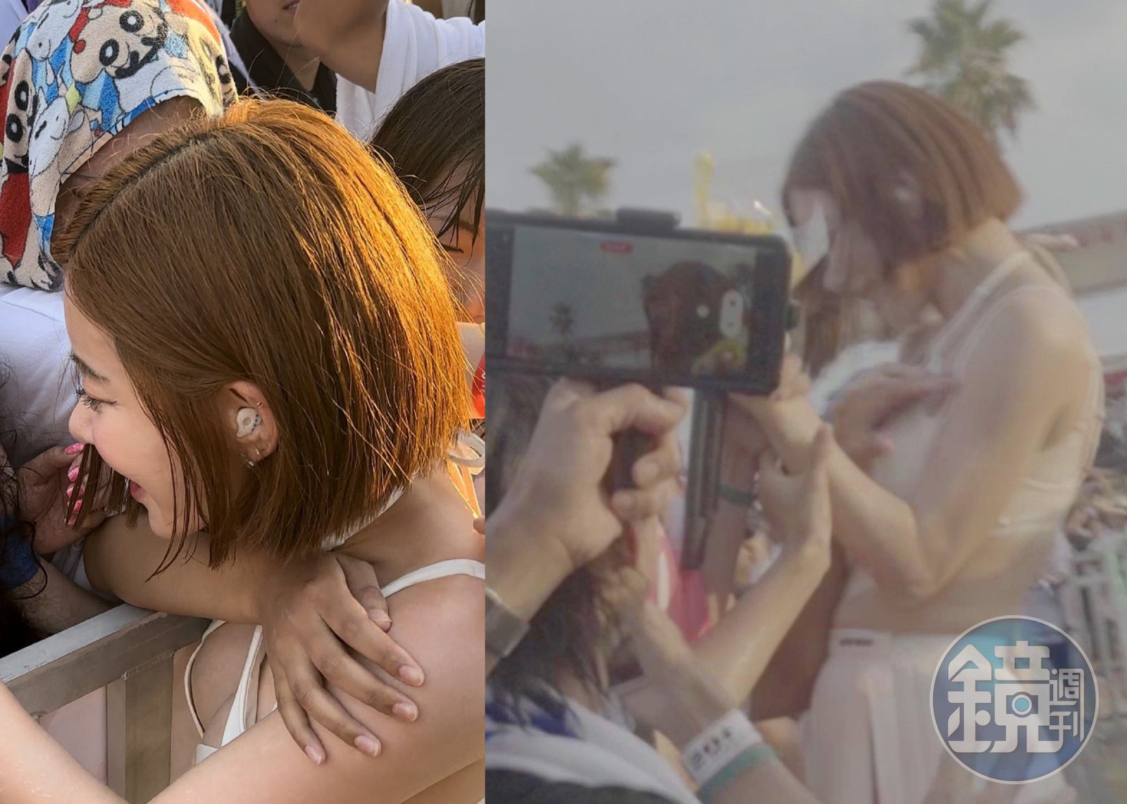 DJ SODA指出,她在表演時喜歡與粉絲互動,所以接近尾聲時都會盡可能地下台去和粉絲擁抱,有近距離接觸,但萬萬沒想到會有粉絲趁此機會騷擾她。她直接公開了相關照片,其中一名粉絲是女性,她說:「這位女性也邊笑邊摸我的胸部,我感覺非常不好,但還是只能裝沒事完成演出。若單看照片會覺得她只是將手伸到我這邊,但其實她狠狠地摸了我的右胸,也是昨天摸最用力的人,在那之後她甚至趁我在和其他粉絲互動時勒我脖子,我經紀人出面把她支開。」