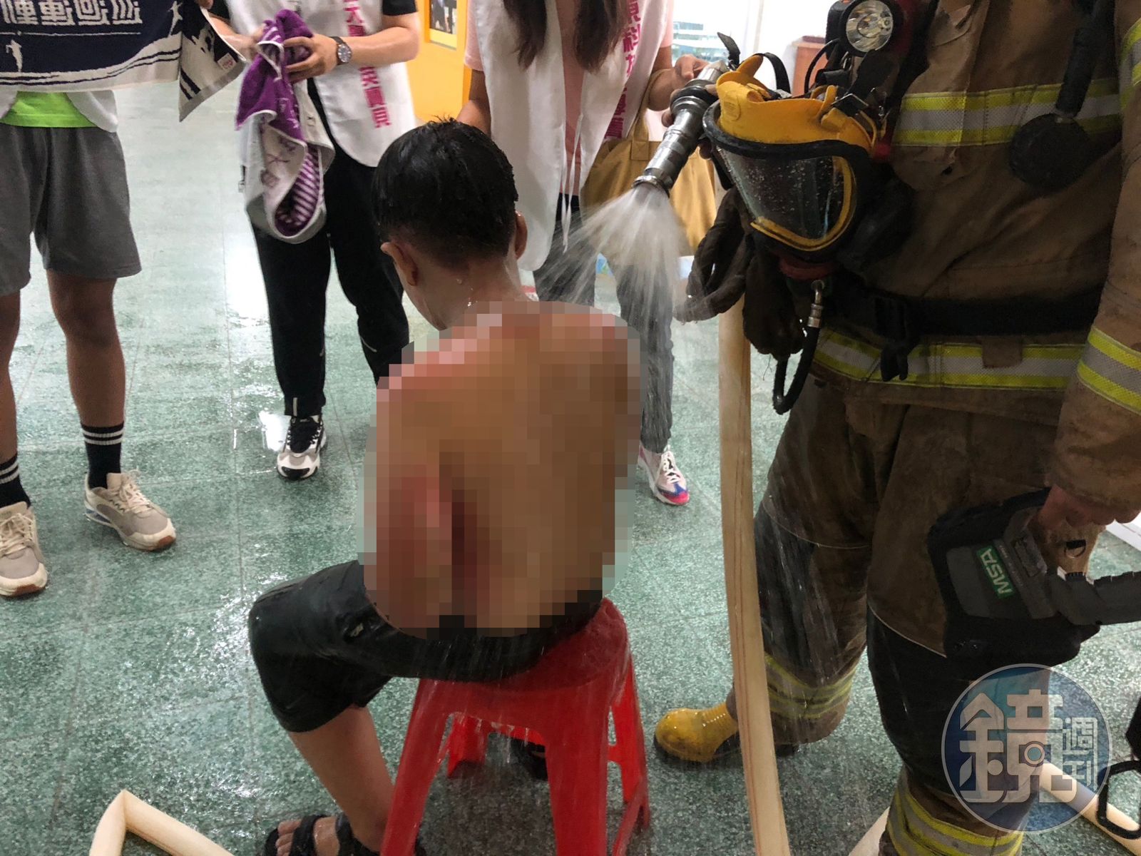 參加營隊的學童約有80名,消防人員到場時,火已被撲滅,現場燃燒面積約0.5平方公尺,起火原因初步研判,疑似液態酒精倒過多,導致產生較多可燃性氣體所引發。2名受傷學員中,6歲男童背部燒燙傷,11歲男童的傷勢比較嚴重,全身約30%、2度燒燙傷,分布在臉、胸、腹部。 校方表示,此科學足球營是學校休閒運動管理系學生所舉辦的,總計約80名學童參加;事發後,遭灼傷的學童由學校老師陪同就醫,其他學員已經安置到別的教室。該營隊有為學員投保意外險,詳細的起火原因仍待後續調查。