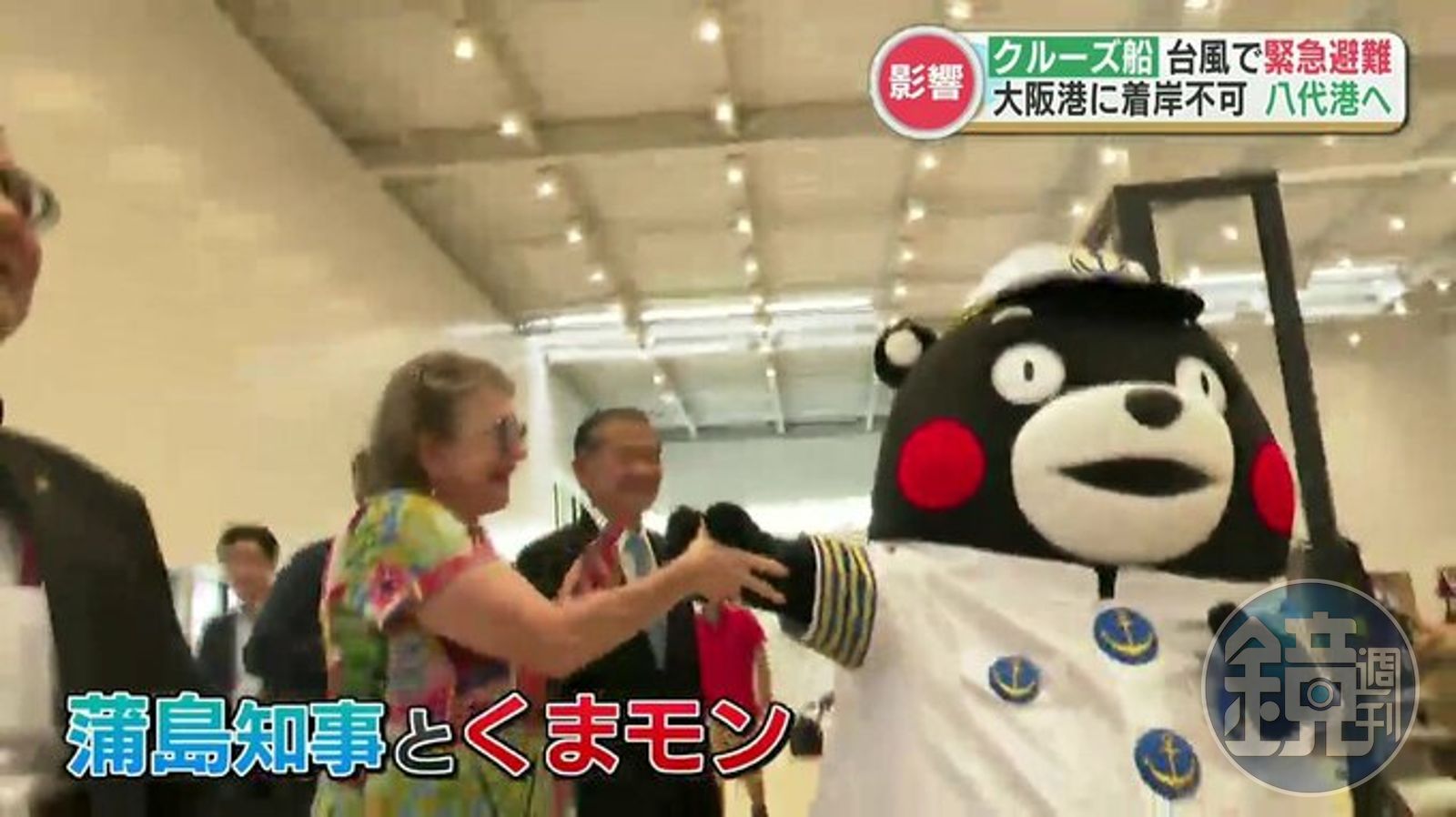 據日本《TBS》報導,這艘「海洋光譜號」郵輪在本月12日從橫濱港出發,並預計在13、14日停泊大阪港,但由於受到蘭恩颱風影響,郵輪無法順利抵達大阪港,因此決定緊急停靠熊本八代港。報導指出,這艘郵輪在15日早上7點半左右,緊急停靠八代港,熊本縣知事蒲島郁夫和「熊本熊」都親自到八代港迎接貴客,並登船慰勞船員們。
