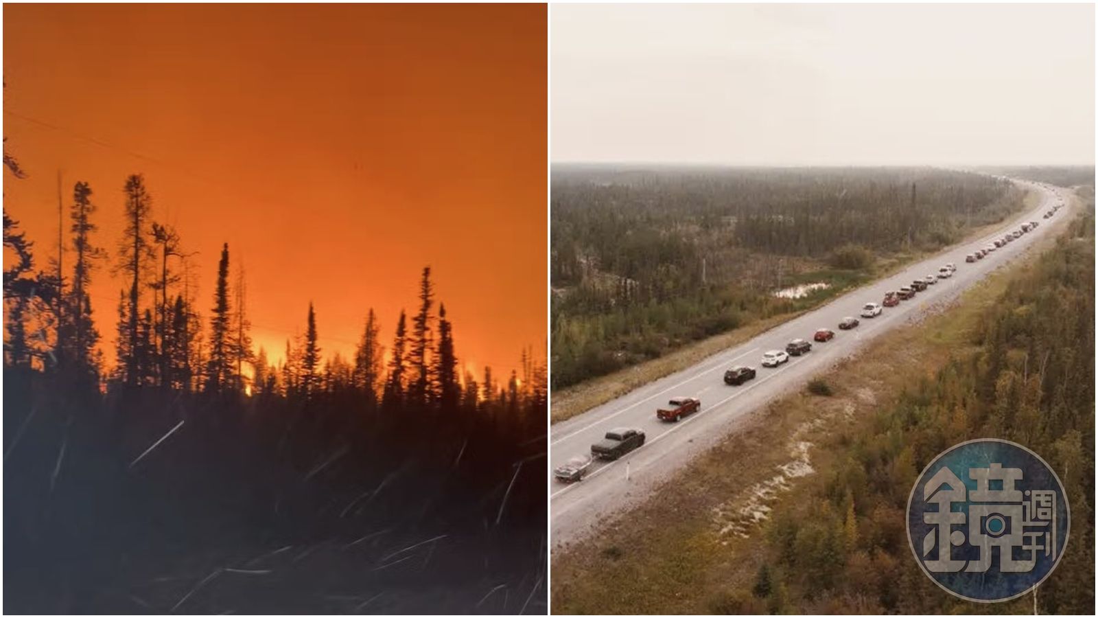 民眾在撤離途中曝光野火煙霧沖天的驚悚景象。