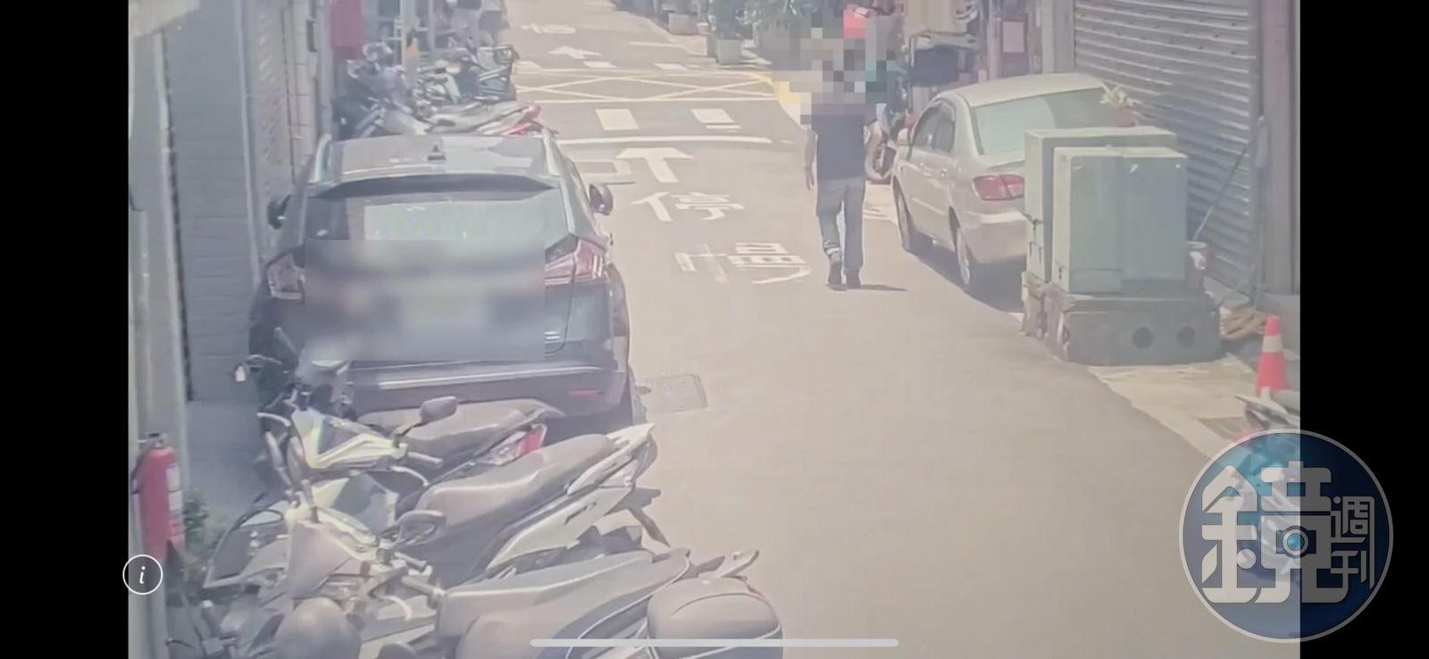 警方根據監視器鎖定胡亂潑灑不明液體的男子。(翻攝畫面)發布時間:2023.08.17 15:00 臺北時間