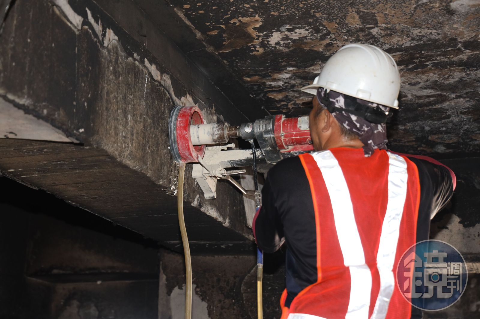 受災戶的柱、樑、樓板經檢視,並未發現有混凝土爆裂,僅發現粉刷層剝落,而柱、樑也未發現有鋼筋外露情形,故研判結構未受氣爆火害影響。另外,經鑑定人現場勘查大樓各住戶,其主要結構樑柱均無結構性裂縫,安全無慮,而室內隔間牆壁屬於非主要結構的構造,現有細裂紋等也不影響整體結構安全。