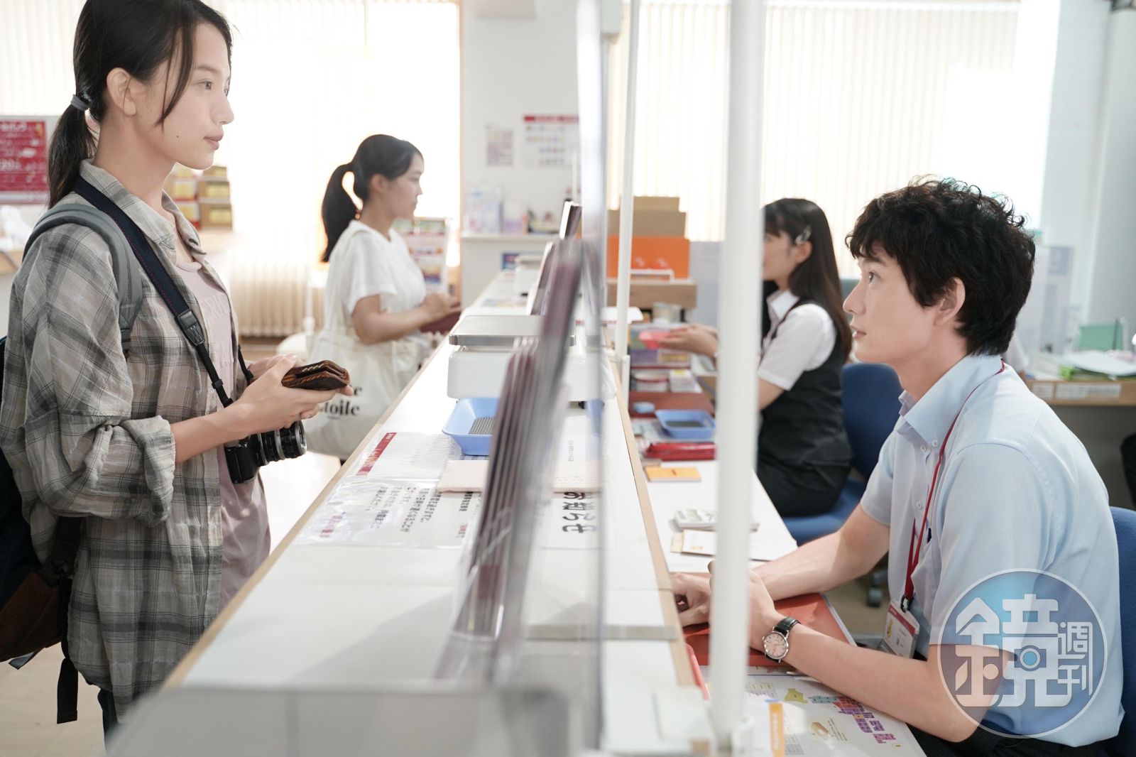 日片《快一秒的他》改編自國片《消失的情人節》,岡田將生(右)飾演急性子郵局員工,總是慢半拍的清原果耶(左)是常客。(甲上娛樂提供)發布時間:2023.08.22 05:58 臺北時間