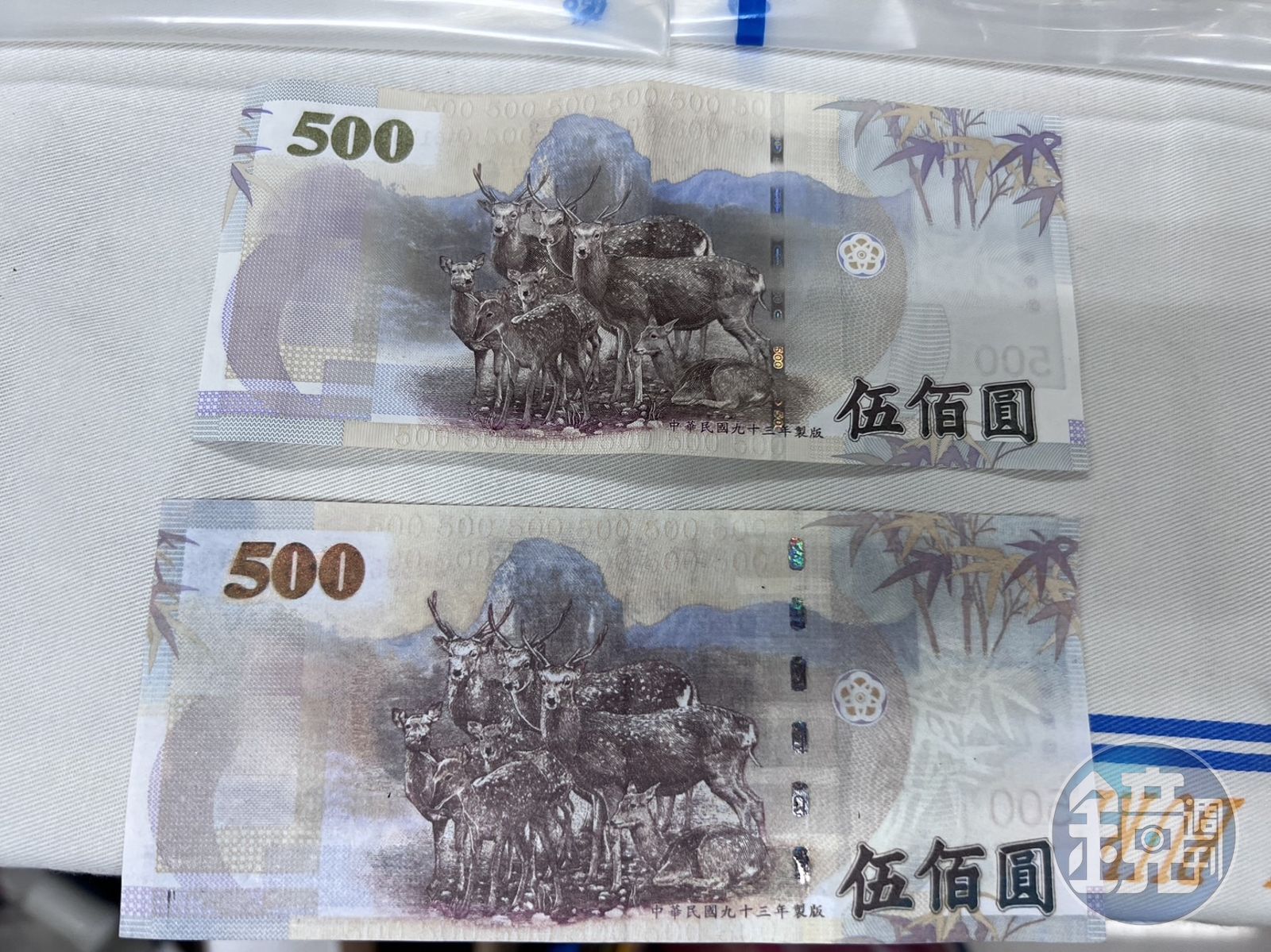 刑事局偵七大隊近期接獲中央銀行通報,指發現多起「安全特徵精心加工的高仿真新台幣偽鈔」,且該批假鈔還疑似流入市面,這批假鈔除了流入市面,擾亂社會秩序外,警方比對北檢查扣毒品贓款,赫然發現同序號的500元偽鈔,不排除被拿來當作毒品交易黑吃黑,甚至漂白換現金。
