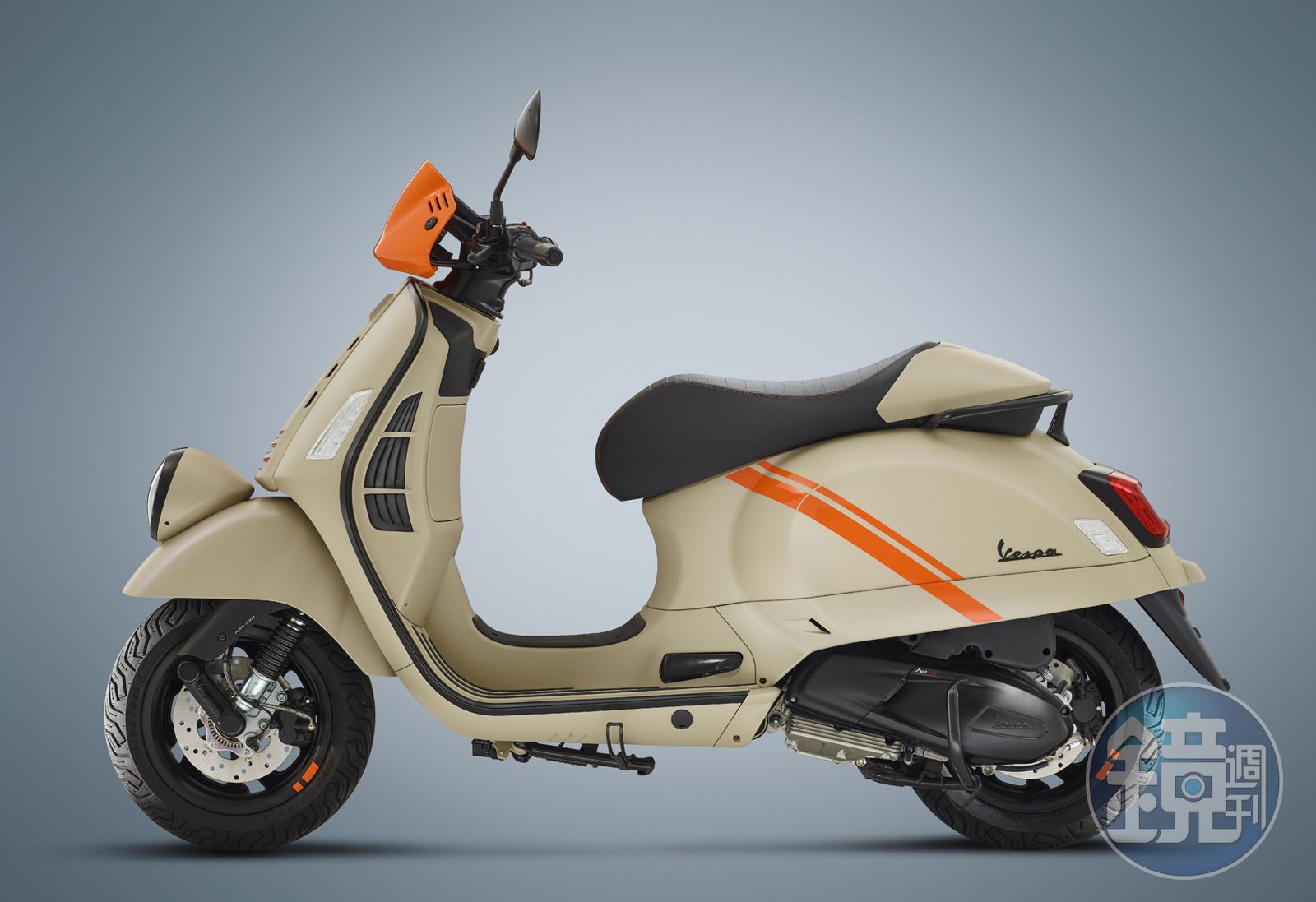 全新改款、霸氣跑格十足的GTV 300也即將引進台灣。 而更具跑格的GTV 300則進行了全新大改款。她沿用了GTV Sei Giorni的越野造型和低頭燈設計,結合圓滑線條和現代的休閒運動風格。大地色系與搶眼的亮橘色於車體各處交織,如小風鏡和輪框。獨特的雙色坐墊呈現VESPA在賽道上的特色,且後部坐墊可拆卸。此外,她還內建了多媒體平臺和免鑰匙啟動功能,展現其現代化和實用性。