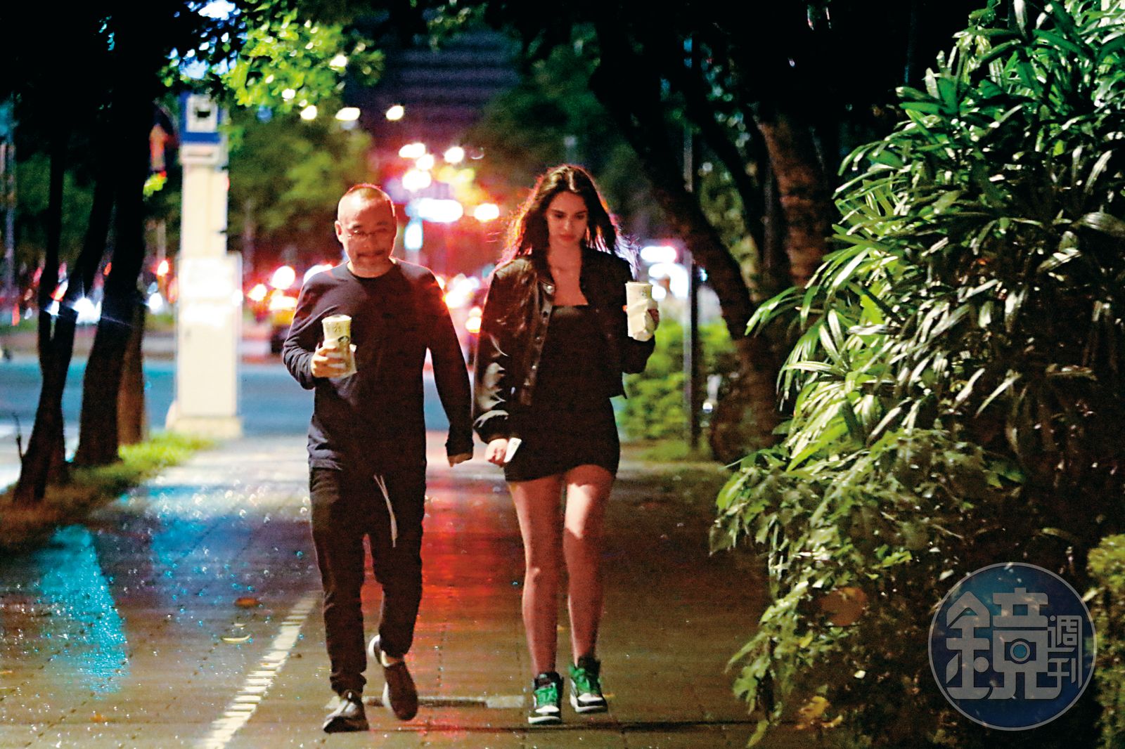 漫步在信義威秀中庭,黃立成與Lina手上各拿一杯飲料,邊走邊聊,充滿了粉紅泡泡,兩人慢慢往台北市松仁路方向走去,雖無肢體上的接觸,但互聊熱烈得完全沉浸於兩人世界,就這麼吹著晚風,在接近凌晨1點時,回到信義傑仕堡住處。