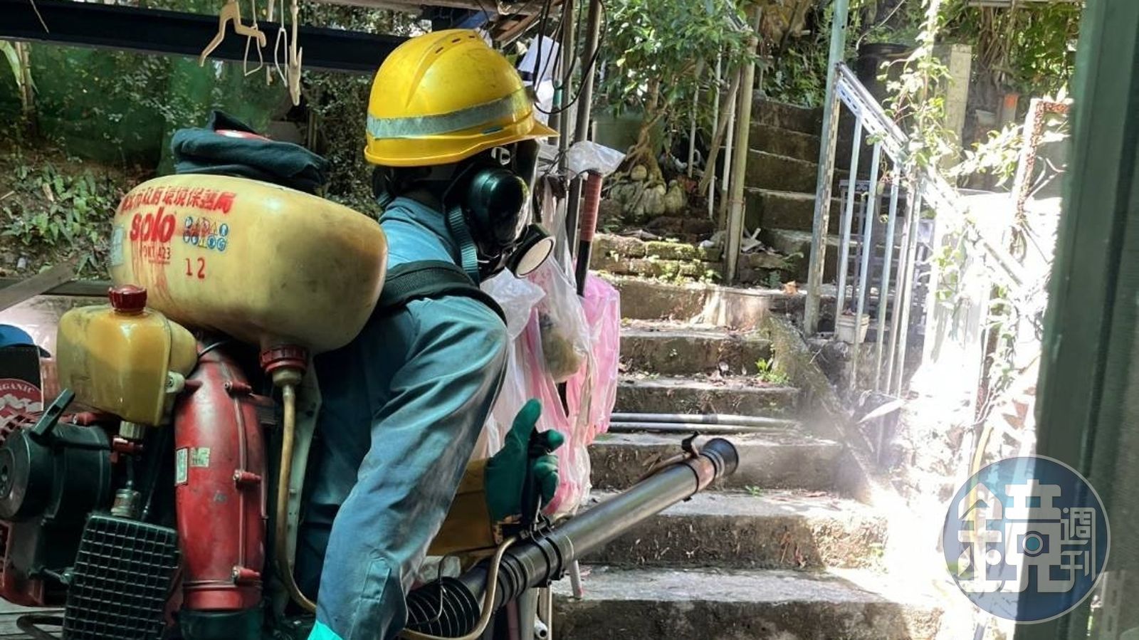 北市衛生局接獲通報後,即進行個案居住地及活動地周圍半徑100公尺範圍病媒蚊密度調查、孳生源清除及化學防治作業;文山區公所已成立區級應變工作小組,並發動社區清潔日進行孳生源清除,運用「巡、倒、清、刷」,檢視戶內外周圍是否有堆置廢棄的容器、雜物、桶、缸、甕、花盆及各式底盤、帆布、廢棄輪胎等,並進行容器減量,已清除96個積水容器。