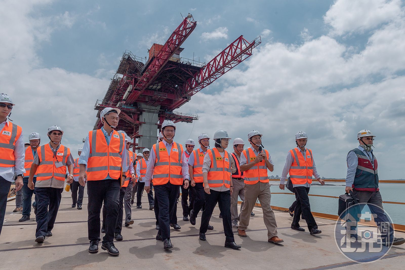 蔡英文認為,金門大橋的建設對台灣工程量能而言,非常具有意義。長期以來,台灣海事工程能力相對於其他國家較為落後,因此,在進行這項工程時,面臨許多困難。這幾年,離岸風電同樣需要進行許多海事工程,希望在這裡所累積的經驗,對離岸風電將能有很大的幫助,也期盼大家都能再接再厲。