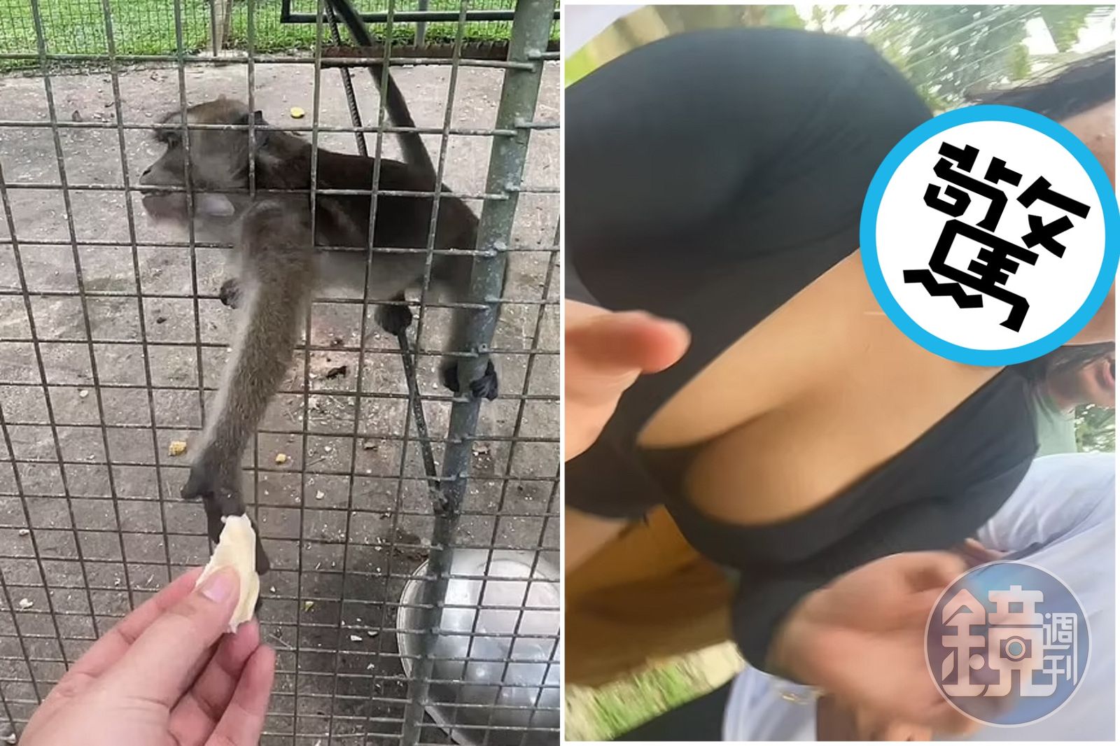 據英國《每日郵報》報導,桑果當時和家人一起到園內動物園參觀,並和一隻小猴子玩,隨後桑果對猴子餵食,正當桑果靠近猴子之際,猴子直接一手就把桑果的手機搶過來,讓桑果當場驚聲尖叫,嚇得花容失色。幸好最後在一名遊客的協助下,讓猴子把手機「還回來」,才讓桑果鬆了一口氣。 不過從「猴子視角」拍攝的影片可見,除了拍到桑果受到嚴重驚嚇的表情,以及家人們「喔買尬」的反應,不少鏡頭都剛好照到桑果「偉大的胸前」、滿滿的巨乳,不禁讓網友直呼:「這猴子很會。」、「對不起,這則新聞我只看到奶。」讓部分網友質疑這隻猴子是否為老司機。 報導指出,這間喬治城遊樂園在2016年開幕,是當地知名的旅遊景點,長有不少家庭與遊客光顧。