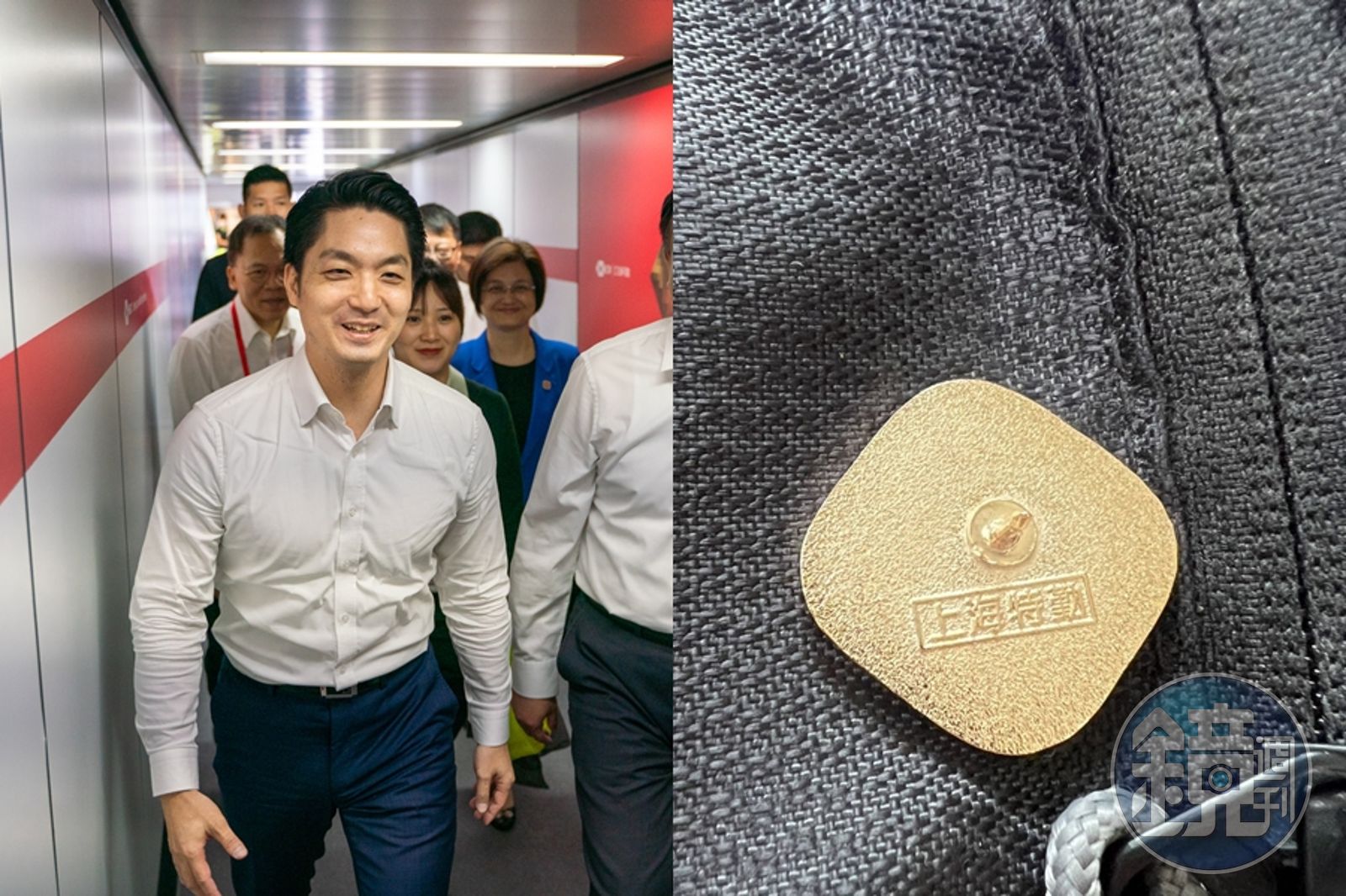 台北市長蔣萬安(左)今抵達上海參加雙城論壇,團隊成員都別有特殊徽章。(左圖為台北市政府提供)發布時間:2023.08.29 12:03 臺北時間